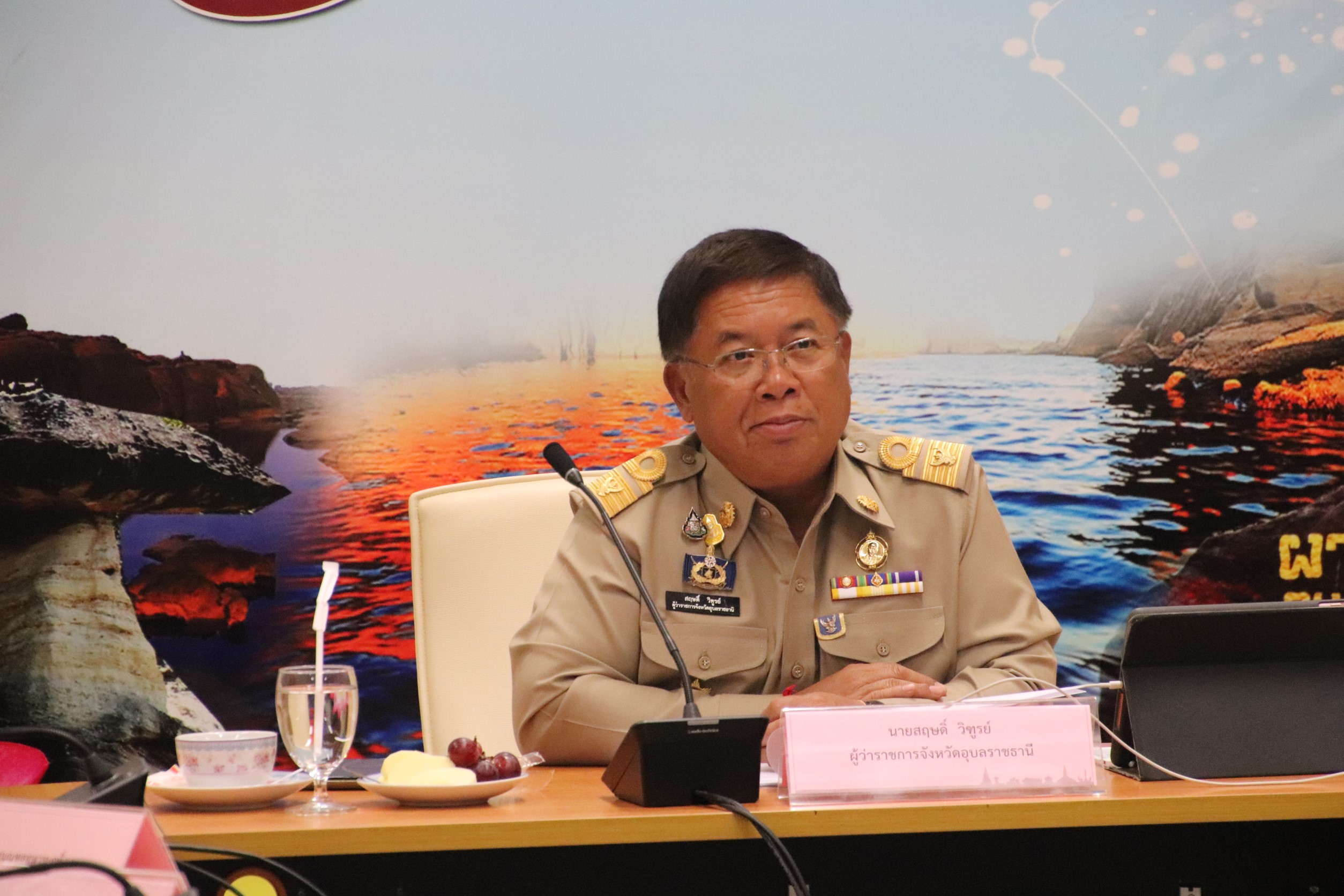 3 ก.พ.63 ที่ห้องประชุม POC ศาลากลางจังหวัดอุบลราชานี นายสฤษดิ์ วิฑูรย์ ผู้ว่าราชการจังหวัดอุบลราชธานี ร่วมกับหัวหน้าส่วนราชการประชุมรับฟังข้อสั่งการในการติดตามสถานการณ์ ไวรัสโคโรนา และฝุ่นละอองขนาดเล็ก PM 2.5 จาก พลเอกประยุทธ์ จันทร์โอชา นายกรัฐมนตรี ผ่านวิดีโอทางไกลจากตึกสันติไมตรี ทำเนียบรัฐบาล กรุงเทพมหานคร