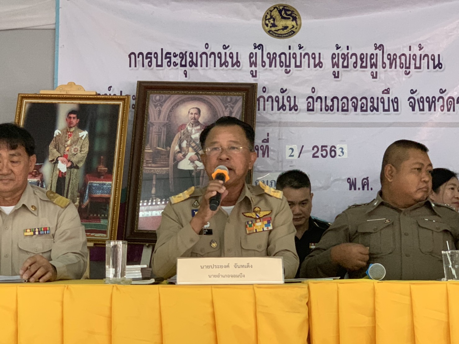 นายประยงค์ จันทเต็ง นายอำเภอ จอมบึง เป็นประธานประชุมประจำเดือน หัวหน้าส่วนราชการ กำนัน ผู้ใหญ่บ้านฯ ครั้งที่ 2/2563 นำข้อราชการ นโยบายเร่งด่วนของรัฐบาลสู่หน่วยงาน รัฐวิสาหกิจ อปท และกำนันผู้ใหญ่บ้าน เน้นการเตรียมการรับเสด็จในวันที่ 10 กุมภาพันธ์ 2563 ที่เรือนจำกลางราชบุรี การดูแลรักษาความสะอาด ความปลอดภัย ที่สนาม ฮ ชั่วคราว ห้องประทับ การต้ังโต๊ะหมู่บูชา การประดับธงชาติ ธงตราสัญญลักษณ์ ตลอดเส้นทางเสด็จ โดยกำหนดให้วันศุกร์ที่ 7 กุมภาพันธ์ 2563 เวลา 0900 น เป็นวัน D-day รวมใจจิตอาสา รณรงค์พัฒนาทำความสะอาด และทาสีร้ัวที่ว่าการอำเภอ สภ จอมบึง ก่อนเข้าประชุม ฝึกระเบียบวินัยแถว ตรวจเครื่องแบบ การถอดหมวก สวมหมวก การทำความเคารพท่าวันทยาหัตถ์ พร้อมถวายเครื่องสักการะแสดงความเคารพต่อ เสด็จพ่อ ร 5 หน้าพระบรมราชานุสาวรีย์ ด้วยความสามัคคี และความจงรักภักดีต่อสถาบันพระมหากษัตริย์