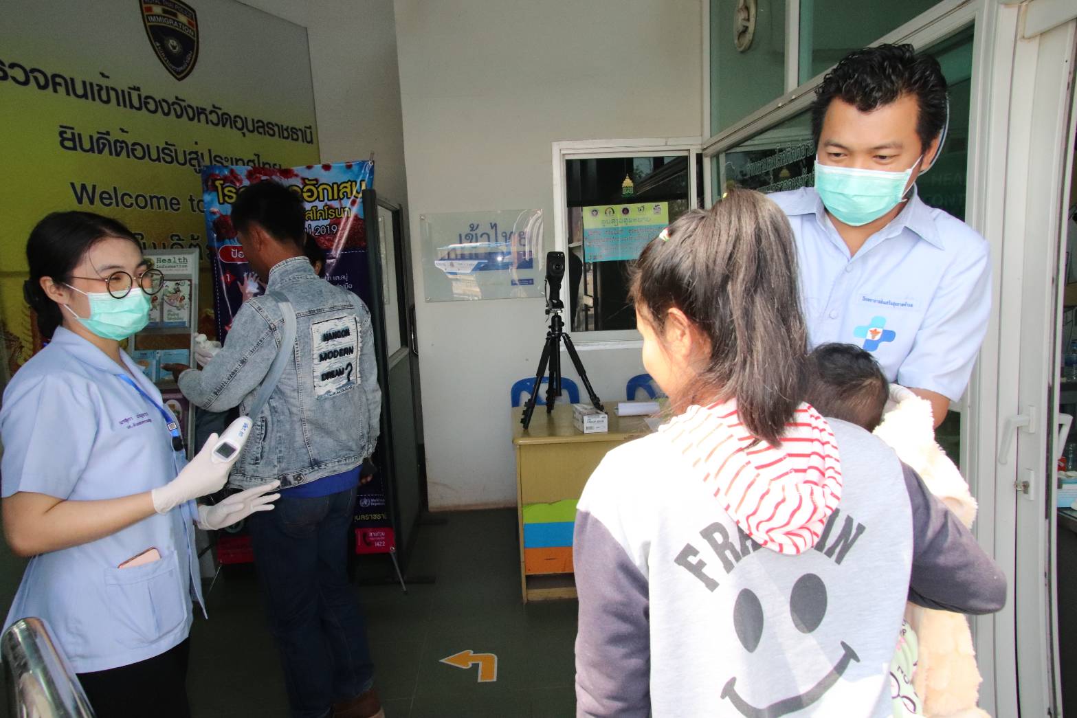 นายสฤษดิ์ วิฑูรย์ ผู้ว่าราชการจังหวัดอุบลราชธานี ลงพื้นที่ออกตรวจติดตามคัดกรองหาเชื้อไวรัสโคโรน่าสายพันธุ์ใหม่ที่ด่านชายแดนไทย-ลาวที่ช่องเม็กต.ช่องเม็ก อ.สิรินธร จ.อุบลราชธานีช่วงเช้าที่ผ่านมา(4 ก.พ.62)ถึงการให้บริการคัดกรองตรวจหาเชื้อไวรัสโคโรน่าสายพันธุ์ใหม่ ตรวจห้องคัดแยกผู้ป่วย จนถึงปัจจุบันพบว่ามีชาวต่างชาติผ่านชายแดนไทยลาว 500 คนต่อวันในจำนวนนี้เป็นชาวจีน 5-8 คนต่อวัน