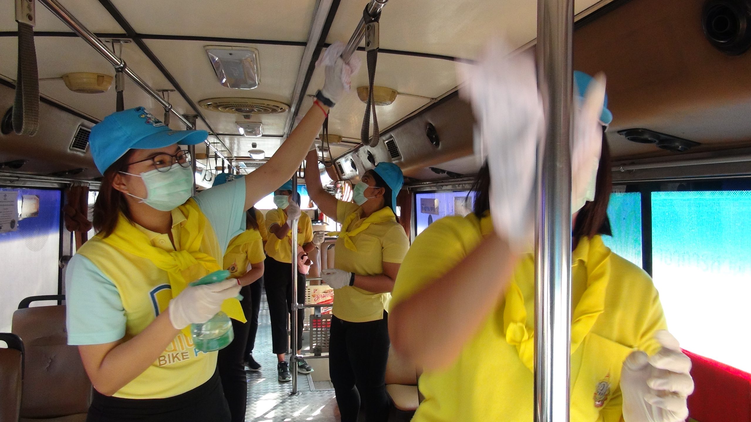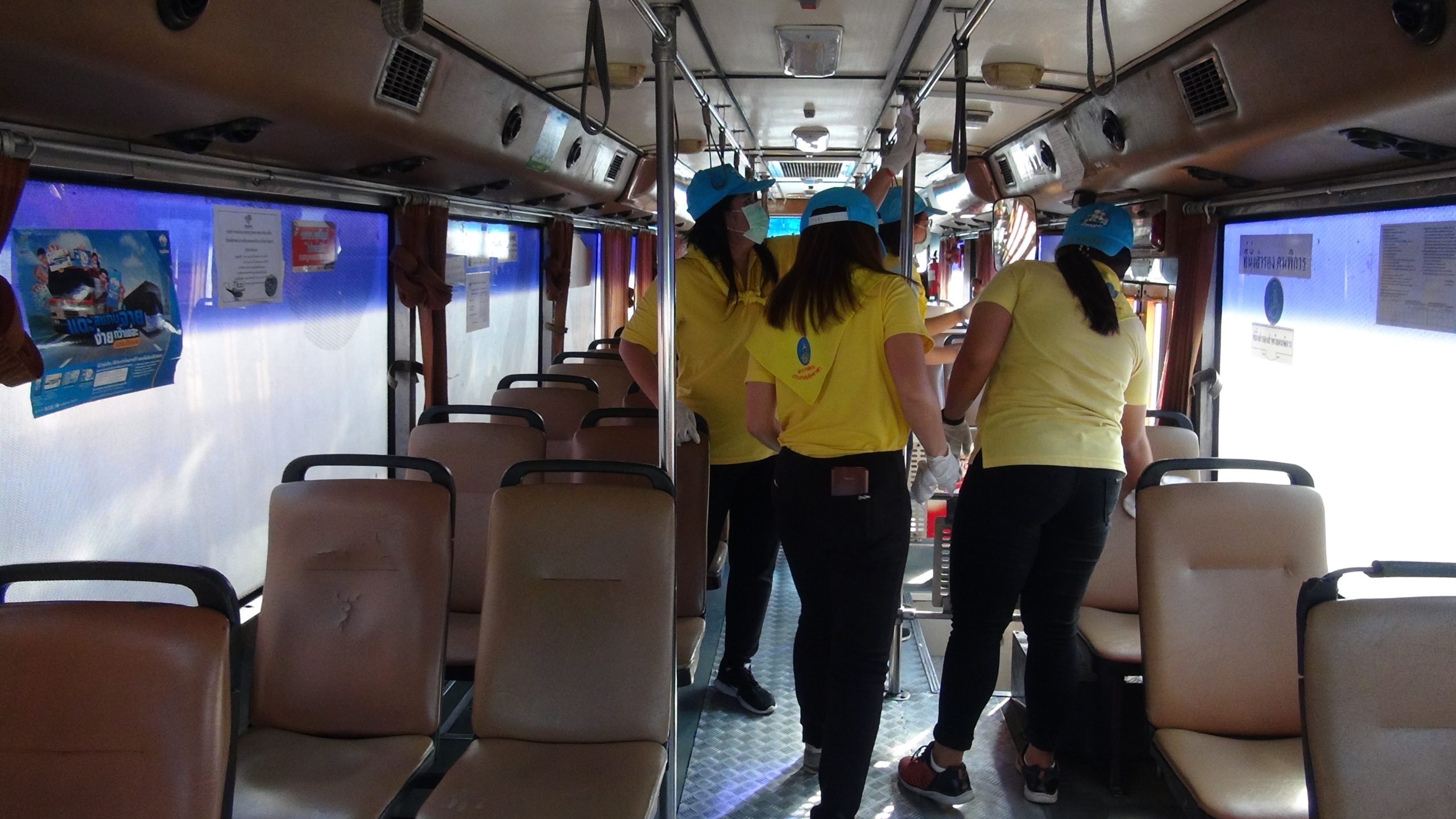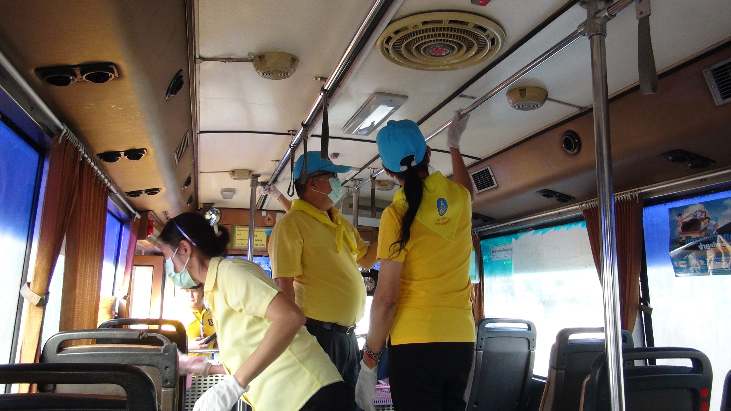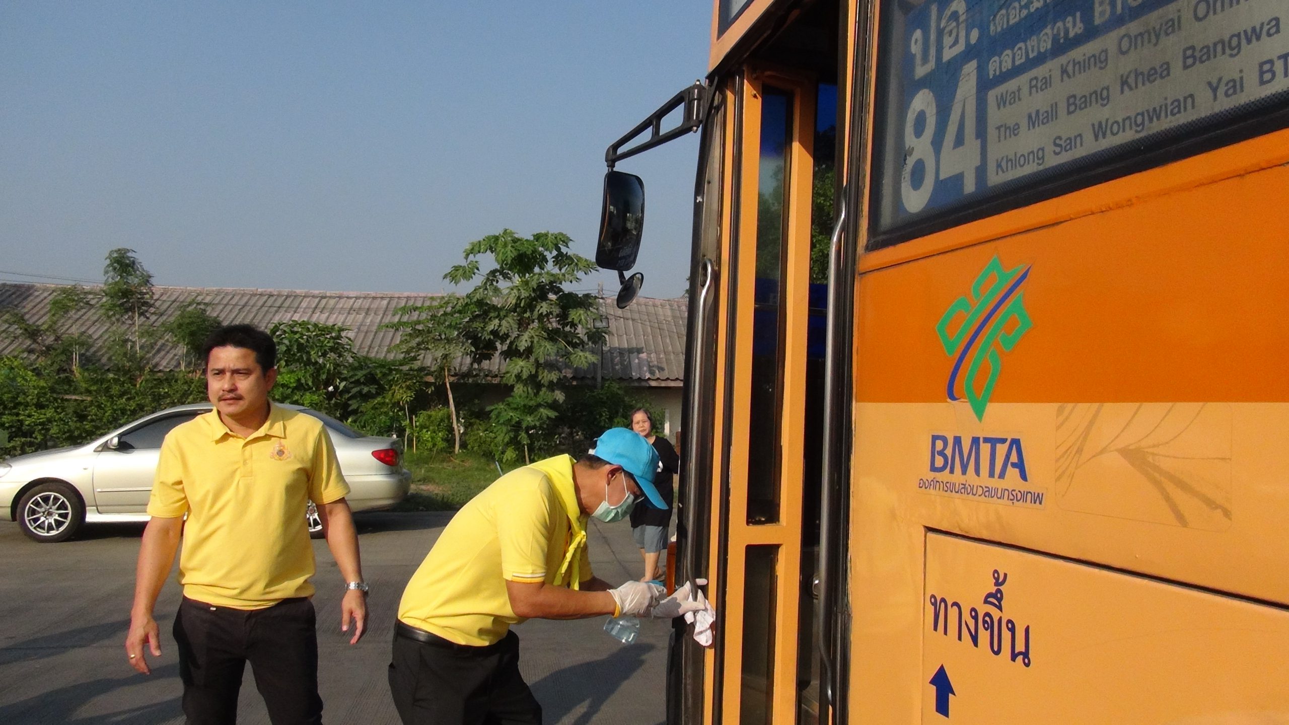 รพ.สามพรานร่วมกับสสอ.สามพรานและขส.มก.ใช้น้ำยาฆ่าเชื้อโรครถเมล์ป้องกันโรคไวรัสโคโรนา สายพันธุ์ใหม่ 2019