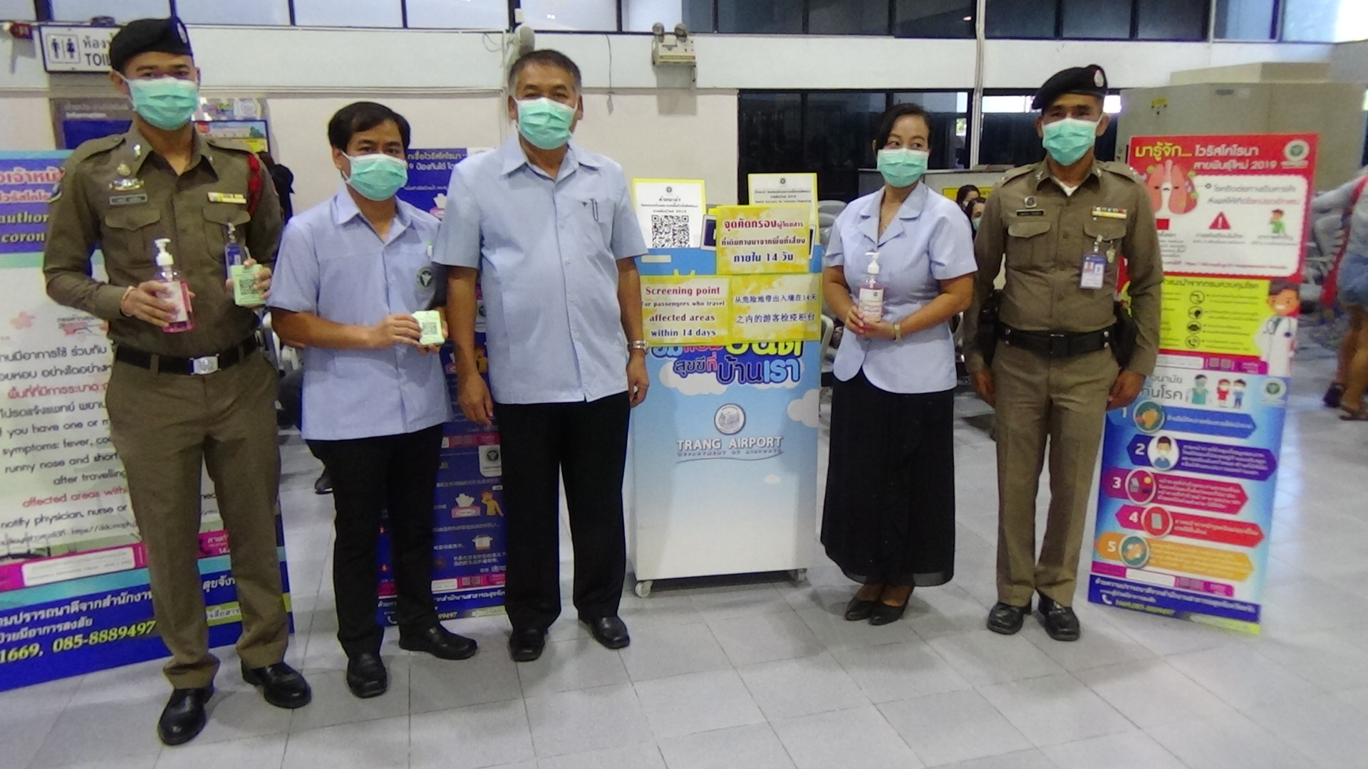 ที่ท่าอากาศยานตรัง นายแพทย์บรรเจิด สุขพิพัฒน์ปานนท์ นายแพทย์สาธารณสุขจังหวัดตรัง พร้อมด้วย พ.จ.อ.เมืองชล วงศ์สุวรรณ ผู้อำนวยการท่าอากาศยานตรัง เจ้าหน้าที่ตำรวจท่องเที่ยว เจ้าหน้าที่สำนักงานสาธารณสุขจังหวัดตรัง ยังคงปฏิบัติหน้าที่อย่างเข้มแข็ง ในการรณรงค์ให้ความรู้เกี่ยวเชื้อไวรัสโคโรนา ที่กำลังแพร่ระบาดอยู่ในขณะนี้ หากประชาชนมีความรู้เกี่ยวกับโรคและการป้องกันมากขึ้นนั้นก็จะทำให้ลดความตื่นตระหนกลงได้ ซึ่งการให้ความรู้เป็นหน้าที่หลักของเจ้าหน้าที่ เพื่อให้ประชาชนและนักท่องเที่ยวมีความรู้เพิ่มมากขึ้น