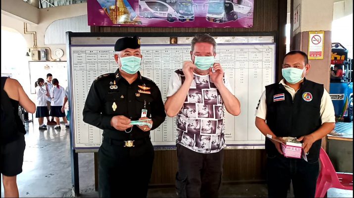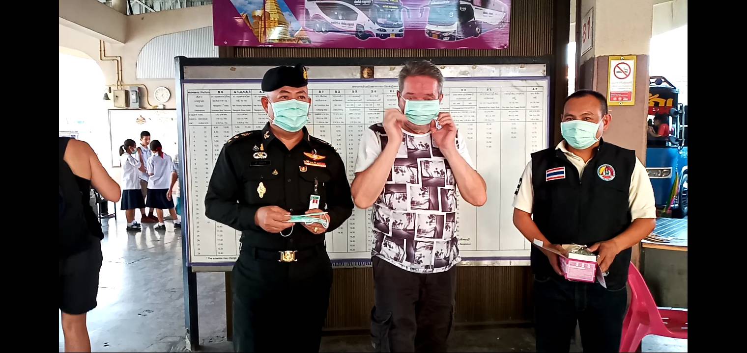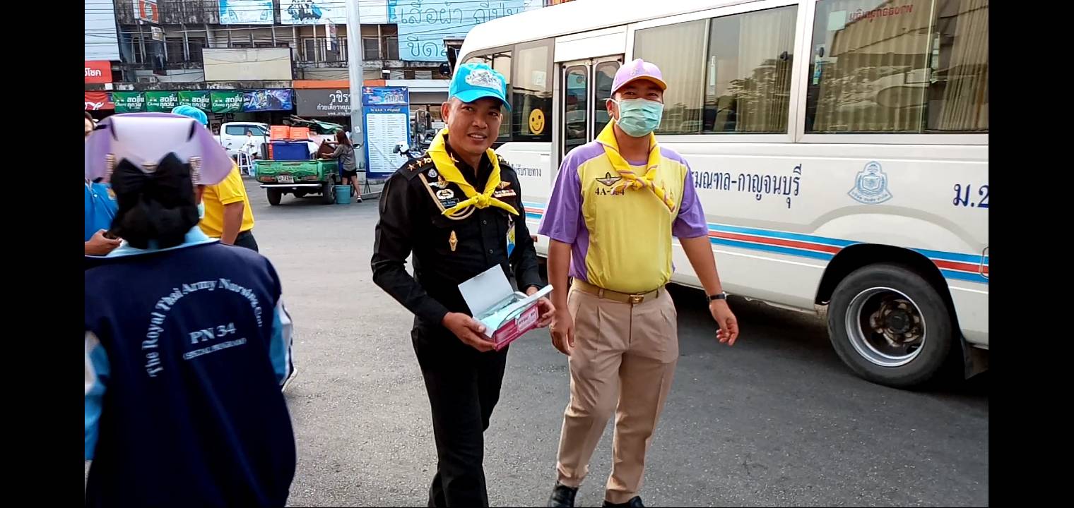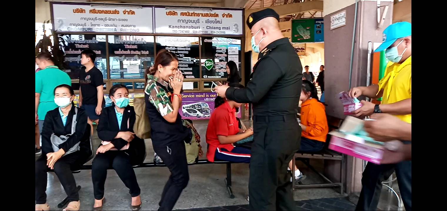 ที่สถานีขนส่งผู้โดยสารจังหวัดกาญจนบุรี (บขส.) พลตรีวสุ เจียมสุข ผู้บัญชาการมณฑลทหารบกที่ 17 มอบหมายให้ พันเอกสุธี เจียมสกุล รองผู้บัญชาการมณฑลทหารบกที่ 17 นำเจ้าหน้าที่จิตอาสาเราทำความดีเพื่อชาติศาสน์กษัตริย์ ร่วมกันแจกหน้ากากอนามัย เพื่อใช้สำหรับการปิดปากปิดจมูกให้แก่ประชาชน ในการป้องกันฝุ่น PM 2.5 และไวรัสโคโรนา พร้อมกันนี้นายจีระเกียรติ ภูมิสวัสดิ์ ผู้ว่าราชการจังหวัดกาญจนบุรี ได้มอบหมายให้นายอนันต์ นาคนิยม ปลัดจังหวัดกาญจนบุรี ร่วมการปฏิบัติหน้าที่แจกหน้ากากอนามัยในครั้งนี้