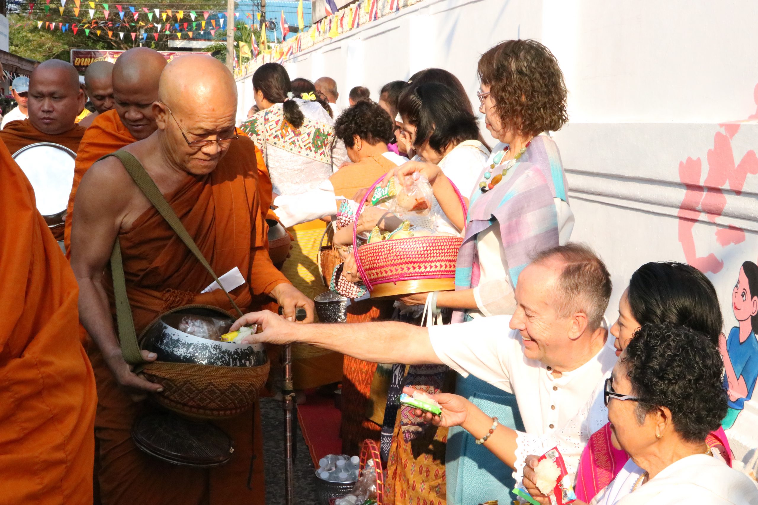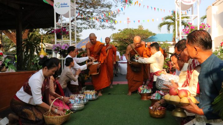 อุบลฯ วันมาฆบูชา ผู้ช่วยรัฐมนตรี นำชาวบ้านสืบสานตักบาตรพื้นถิ่นโบราณ