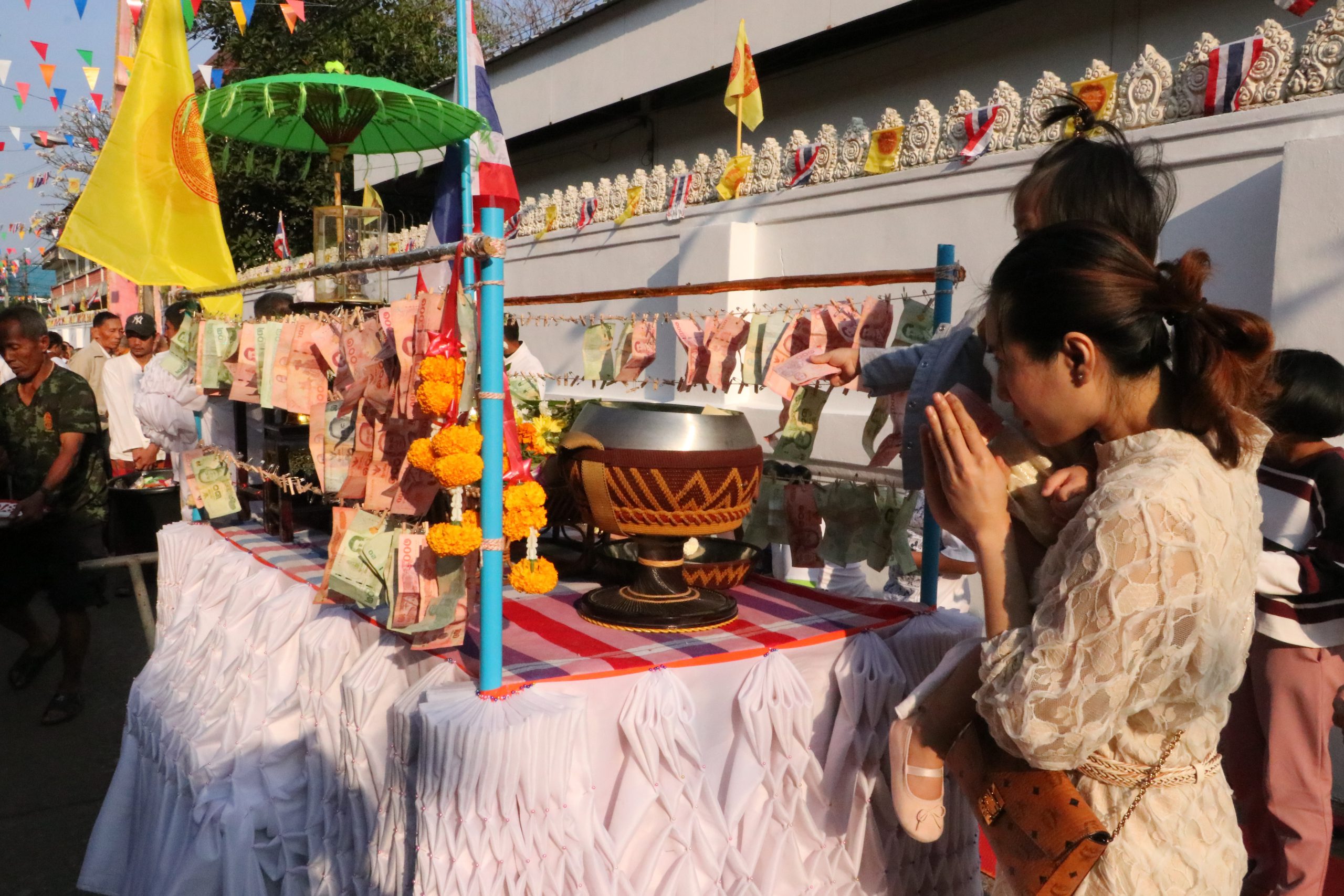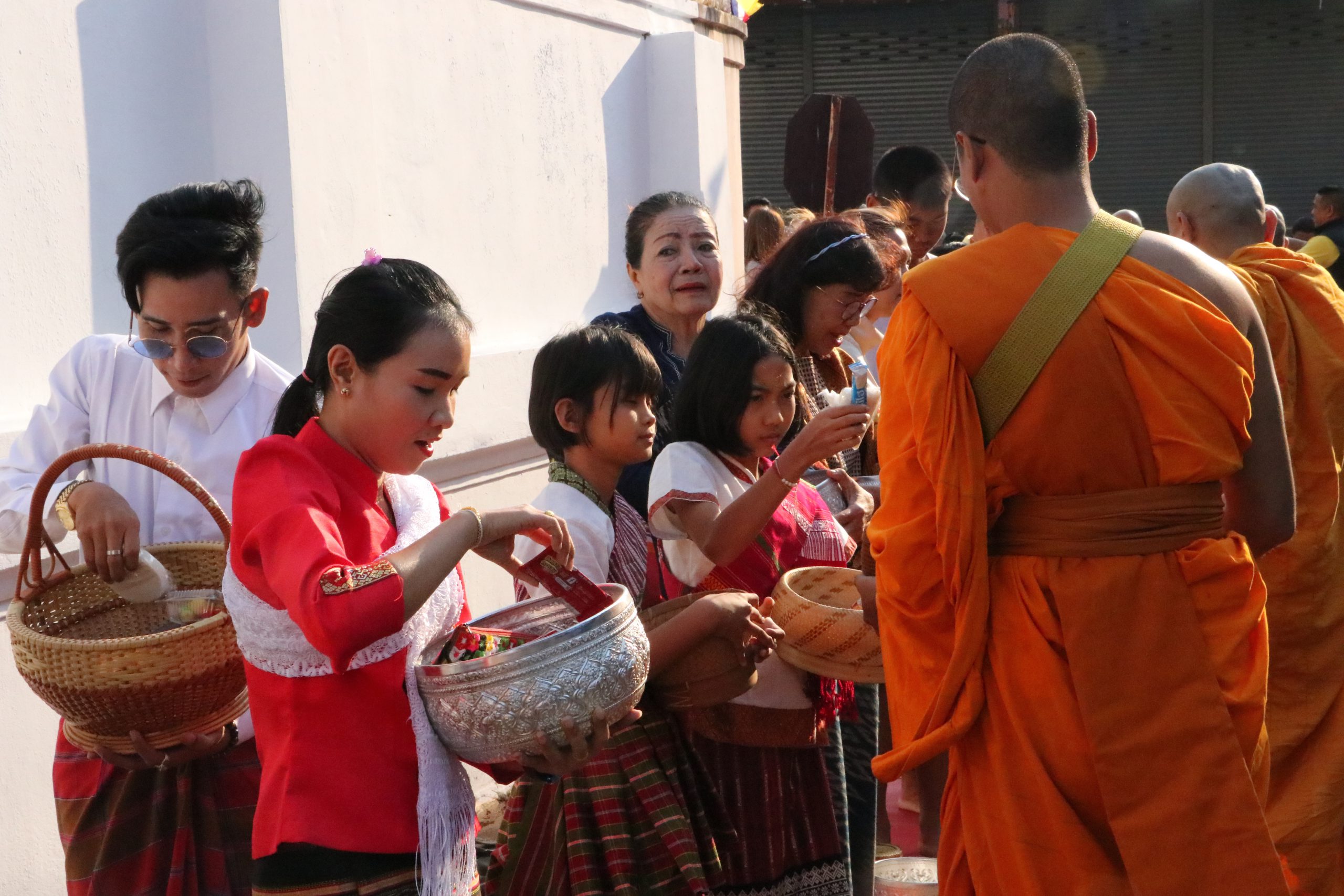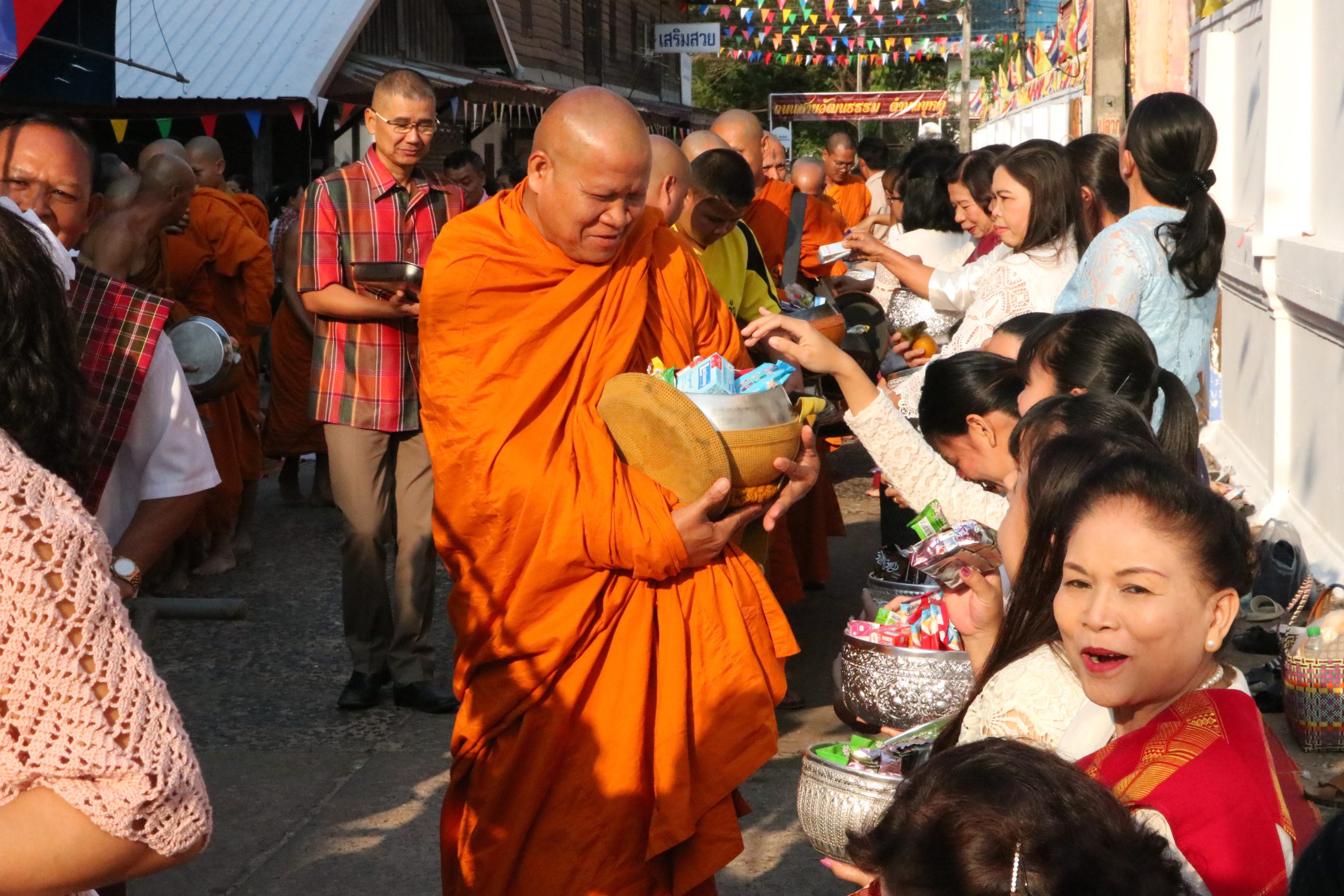 วันมาฆบูชา ผู้ช่วยรัฐมนตรีประจำสำนักนายกรัฐมนตรี ,นายอำเภอ นำชาวตระการพืลผล จ.อุบลฯ แต่งชุดไทยพื้นเมืองโบราณ ตักบาตรถนนสายวัฒนธรรม อิ่มบุญ สุขใจกันถ่วนหน้า