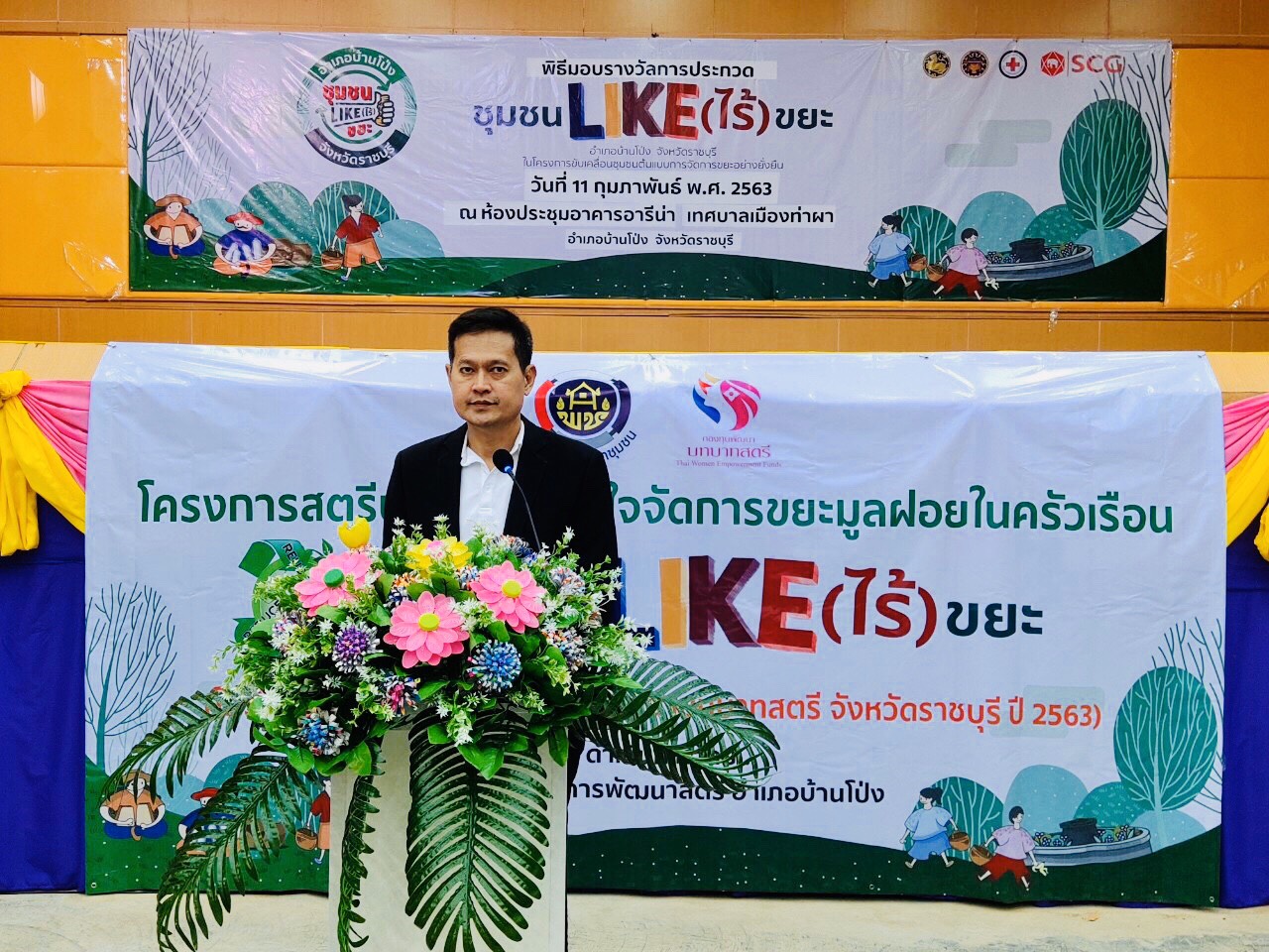 เมื่อ เวลา 9.00 น. ณ อาคารอารีน่า หมู่ที่ 17 ตำบลท่าผา นายทศพล เผื่อนอุดม นายอำเภอบ้านโป่ง เป็นประธานเปิดโครงการสตรีบ้านโป่งร่วมใจจัดการขยะมูลฝอยในครัวเรือน สู่ชุมชน LIKE(ไร้) ขยะโดยงบประมาณในการดำเนินงานนี้เป็น โครงการงบอุดหนุนเงินกองทุนพัฒนาบทบาทสตรีจังหวัดราชบุรีปี 2563 จากคณะกรรมการพัฒนาสตรี อำเภอบ้านโป่ง