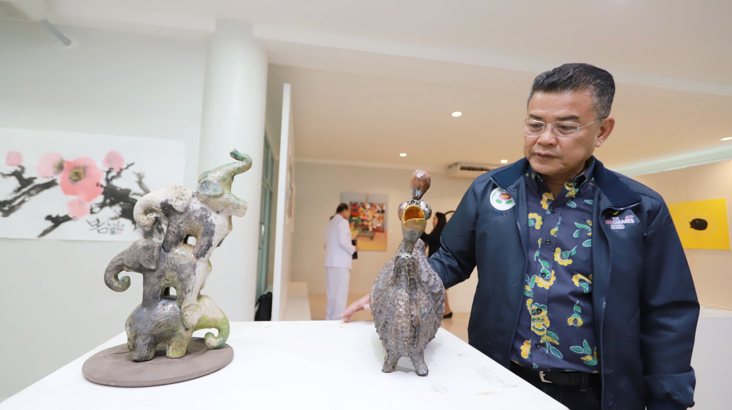 ดร.พินิจ บุญเลิศ ผู้ว่าราชการจังหวัดปทุมธานี ให้เกียรติเป็นประธานในพิธีเปิดนิทรรศการสร้างสรรค์ศิลปกรรมนานาชาติ ครั้งที่ 15“RMUTT 15th International Art Workshop and Exhibition 2020” ณ หอศิลปกรรม อาคาร 2ชั้น 1 คณะศิลปกรรมศาสตร์ มหาวิทยาลัยเทคโนโลยีราชมงคลธัญบุรี โดยมีผู้ช่วยศาสตราจารย์ ดร.สมหมาย ผิวสะอาด อธิการบดีมหาวิทยาลัยเทคโนโลยีราชมงคลธัญบุรี นายพิษณุ ประภาธนานันท์ นายอำเภอธัญบุรี รองศาสตราจารย์ ดร.สมพร ธุรี คณบดีคณะศิลปกรรมศาสตร์ ให้การต้อนรับ