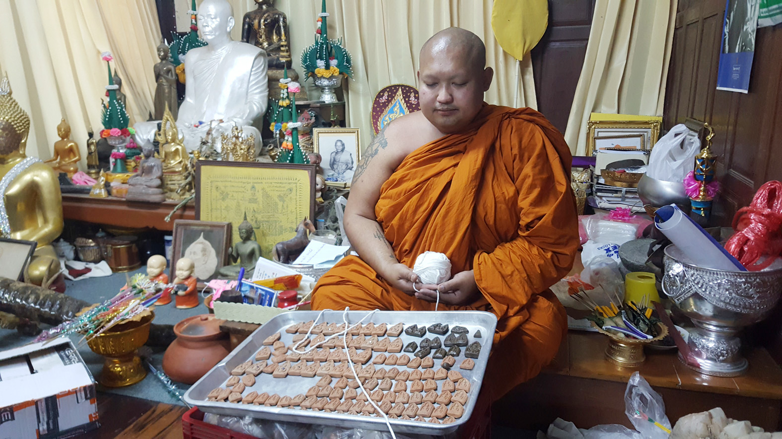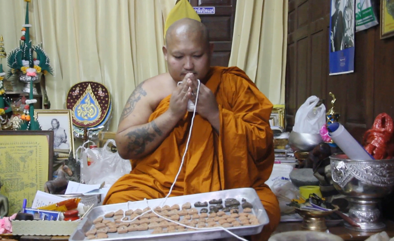 สุพรรณบุรี วัดปู่เจ้าแจกพระขุนแผนคู่รุ่นสลักคำอธิฐานรับวาเลนไทน์หนึ่งเดียวในโลก