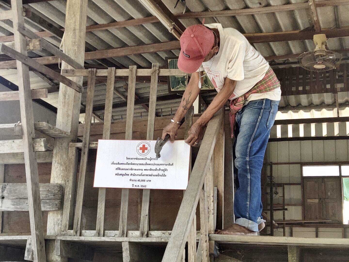 ซึ่งได้ดำเนินการปรับปรุง เปลี่ยนไม้ฝา กระเบื้องมุงหลังคา ใส่วงกบประตู พร้อมราวจับ ไม้แปรข้างเพื่อความสะดวก สบายมากขึ้น และให้มีความมั่นคงแข็งแรงมากขึ้น ทั้งนี้ นายทศพล เผื่อนอุดม นายอำเภอบ้านโป่ง ได้เป็นตัวแทนมอบเงินที่ปลัดอำเภอและข้าราชการฝ่ายปกครองได้ร่วมกันบริจาค จำนวน 7,000 บาท พร้อมกิ่งกาชาดอำเภอบ้านโป่งได้มอบเครื่องอุปโภค บริโภค เพื่อเป็นขวัญและกำลังใจด้วย