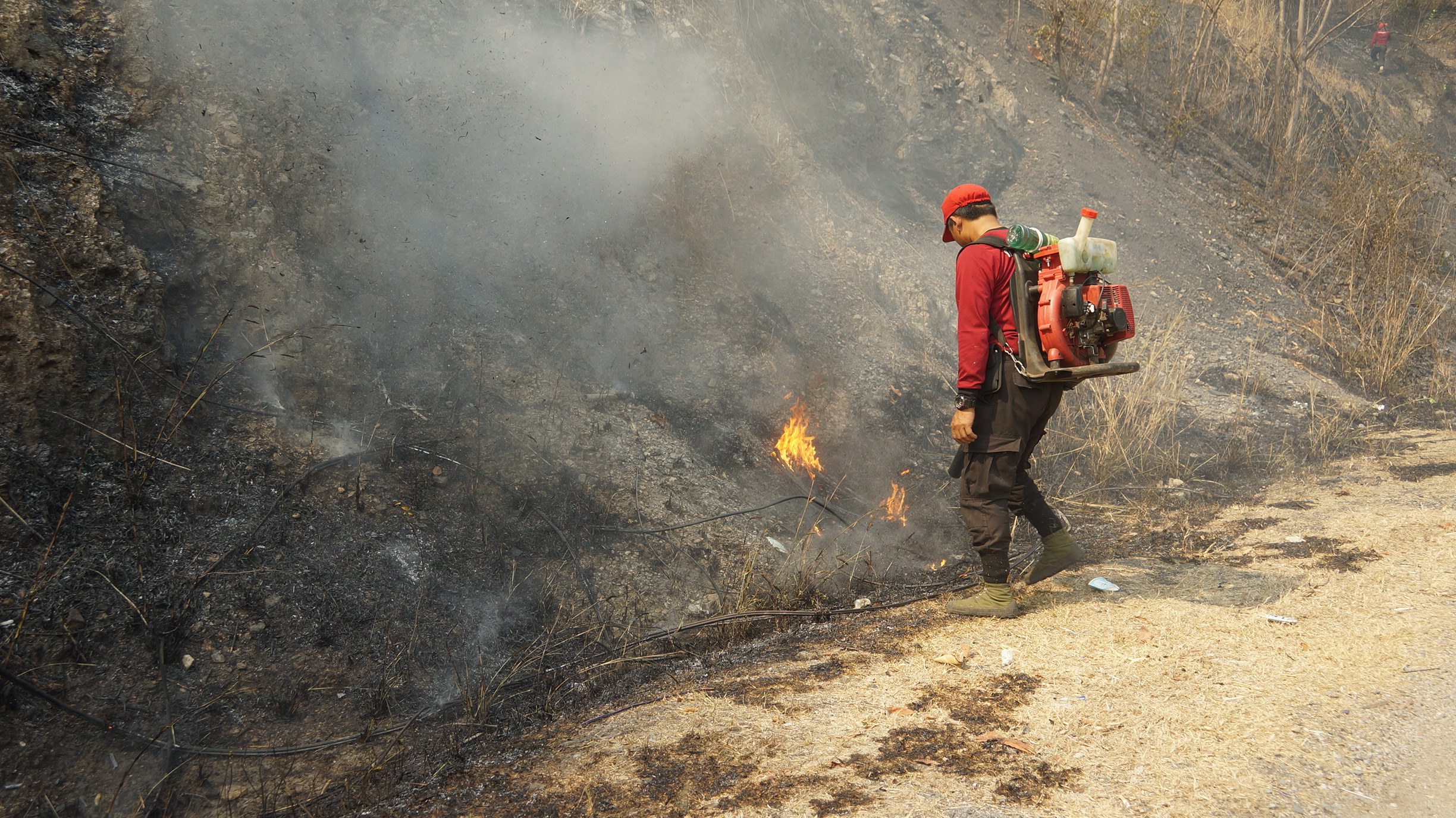 สถานการณ์แล้งหนักขึ้น ฝนไม่ตก หญ้าข้างทางหลวงแห้งจัด และถูกมือดีของชาวบ้านที่ขับรถสัญจรไปมา มีคนมักง่ายสูบบุหรี่แล้วทิ้งก้นบุหรี่ลงข้างทางและปลิวไปที่หญ้าแห้งเกิดการเผาไหม้อย่างรวดเร็วทำให้สองข้างทางหลวง107 โชตนา ในเขตพื้นที่ติดต่อกันระหว่างอำเภอเชียงดาว-อำเภอไชยปราการ จังหวัดเชียงใหม่ ซึ่งในทั้งสองข้างทางเป็นป่าตลอดเส้นทาง เกิดการลุกไหม้ของไฟป่าทุกวัน จนเจ้าหน้าที่ชุดปฏิบัติการไฟป่า เอาไม่อยู่เพราะมีกำลังไม่กี่นายที่ต้องตระเวนกันทั้งวัน