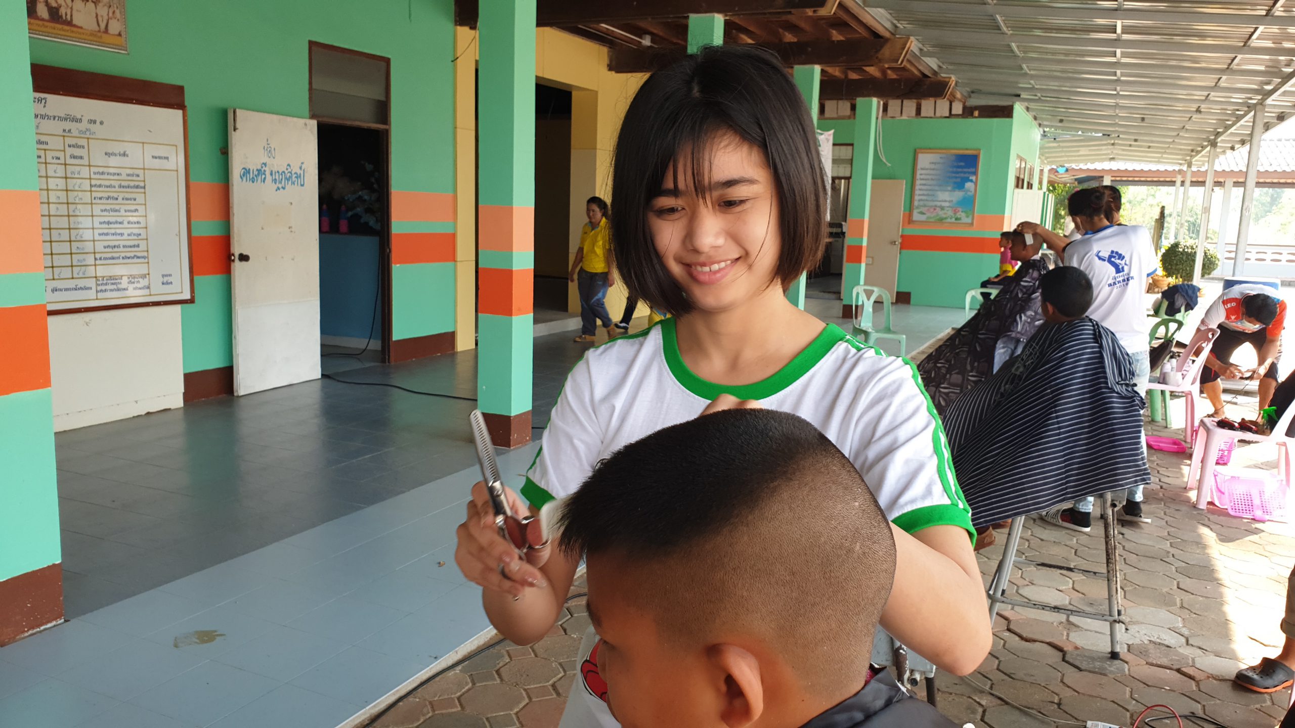 คุมประพฤติประจวบฯ จัดกิจกรรมพัฒนา ทำความสะอาด -ตัดผม นักเรียนโรงเรียนวังมะเดื่อ
