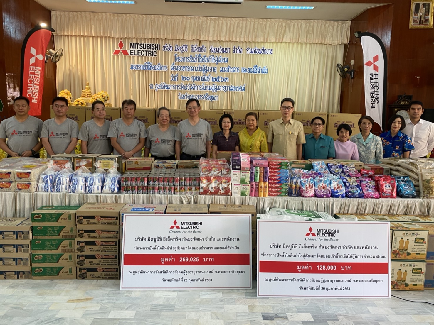 ทางบริษัทมิตซูฯ มอบเก้าอี้รถเข็นสำหรับคนพิการ จำนวน 40 คัน มูลค่า 128,000 บาท บริจาคข้าวสารอาหารแห้งให้กับผู้ยากไร้ และจัดเลี้ยงอาหารกลางวัน ให้กับผู้สูงอายุ จำนวน 269,025 บาท โครงการปันน้ำใจคืนกำไรสู่สังคม (The Giver) ของบริษัท มิตซูบิชิอีเล็คทริค กันยงวัฒนา จำกัด ในวันนี้เป็นโครงการปันน้ำใจคืนกำไรสู่สังคม ของบริษัท มิตซูบิชิอีเล็คทริค กันยงวัฒนา จำกัด เป็นกิจกรรมที่น่าชื่นชมเป็นอย่างยิ่งที่ได้ทำกิจกรรมเพื่อสังคม ซึ่งในวันนี้ก็ได้สนับสนุนกิจกรรม เสริมสร้างคุณภาพชีวิต เพิ่มโอกาส ช่วยเติมเต็มความรัก ความอบอุ่น การอยู่ร่วมกัน ในสังคม ให้กับคนพิการ ผู้ดูแลคนพิการ ผู้ยากไร้ และผู้สูงอายุ