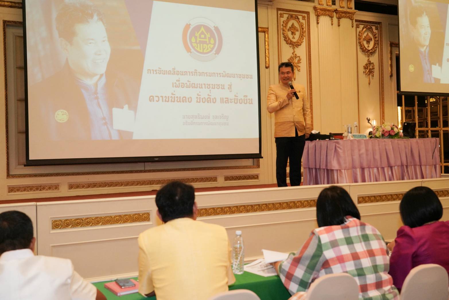 วันที่ 20 กุมภาพันธ์ 2563 นายสุทธิพงษ์ จุลเจริญ อธิบดีกรมการพัฒนาชุมชน พบปะให้กำลังใจผู้เข้าร่วมการประชุมเชิงปฏิบัติการการดำเนินงานตามมาตรการปรับปรุงประสิทธิภาพในการปฏิบัติราชการ ประจำปีงบประมาณ พ.ศ. 2563 จัดขึ้นที่โรงแรมเอบีน่าเฮ้าส์ กรุงเทพมหานครโดยมีหัวหน้ากลุ่มงานยุทธศาสตร์การพัฒนาชุมชน หัวหน้ากลุ่มงานส่งเสริมการพัฒนาชุมชน หัวหน้าฝ่ายอำนวยการ และข้าราชการทั้งส่วนกลางและส่วนภูมิภาคทั้ง 76 จังหวัด พร้อมทั้งกรุณามอบแนวทางการขับเคลื่อนงานการพัฒนาชุมชน ความว่าอธิบดีกรมการพัฒนาชุมชน น้อมนำพระราโชบาย “สืบสาน รักษา ต่อยอด ศาสตร์พระราชา” ไปสู่การปฏิบัติ ให้เกิดผลเป็นรูปธรรมและยั่งยืน ทั้งกับข้าราชการในองค์กรและประชาชน โดยขอให้ข้าราชการ พช. ได้น้อมนำเป็นแนวทางในการดำเนินชีวิตและการดำเนินงาน เพื่อพาตนเองไปสู่ความสุขที่ยั่งยืน