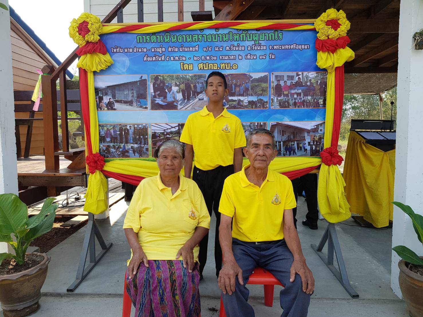 ซึ่งมีผู้มีจิตศรัทธาที่สำคัญได้แก่คุณวิทยา พานิชตระกูล กรรมการผู้จัดการ บริษัท ฮาตารึ อิเลคทริค จำกัดศูนย์ต่อสู้ป้องกันภัยทางอากาศกองทัพบกที่ 1 ประจำพื้นที่ภาคกลางได้เข้าดำเนินการสร้างบ้านใหม่ให้คับนายอำนวย ลำไย บ้านเลขที่ 3/4 หมู่ 8 ตำบล วังน้อย อำเภอ วังน้อย จังหวัดพระนครศรีอยุธยา สภาพบ้านเดิมได้ปลูกบ้านอยู่ชายคลองซึ่งเป็นที่รุกล้ำ เขตชลประทาน มีความประสงค์ย้ายมาปลูกที่ราชพัสดุ