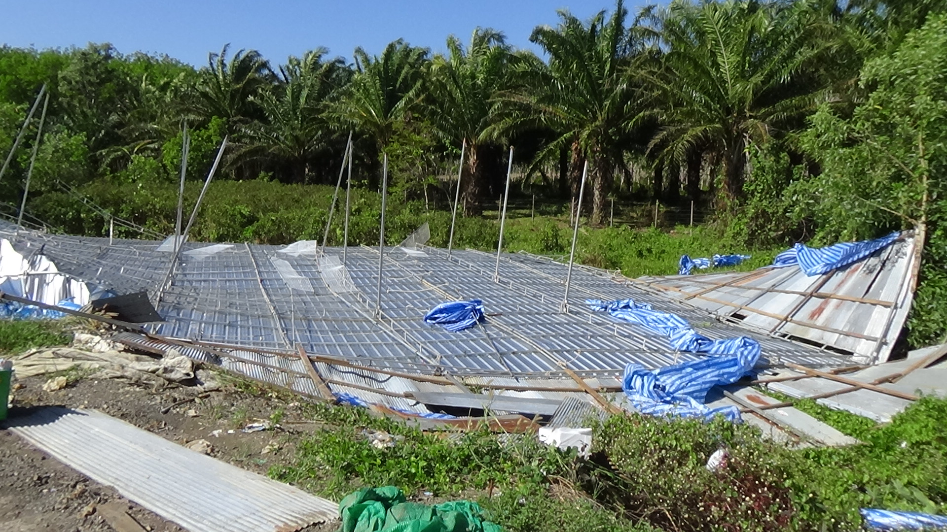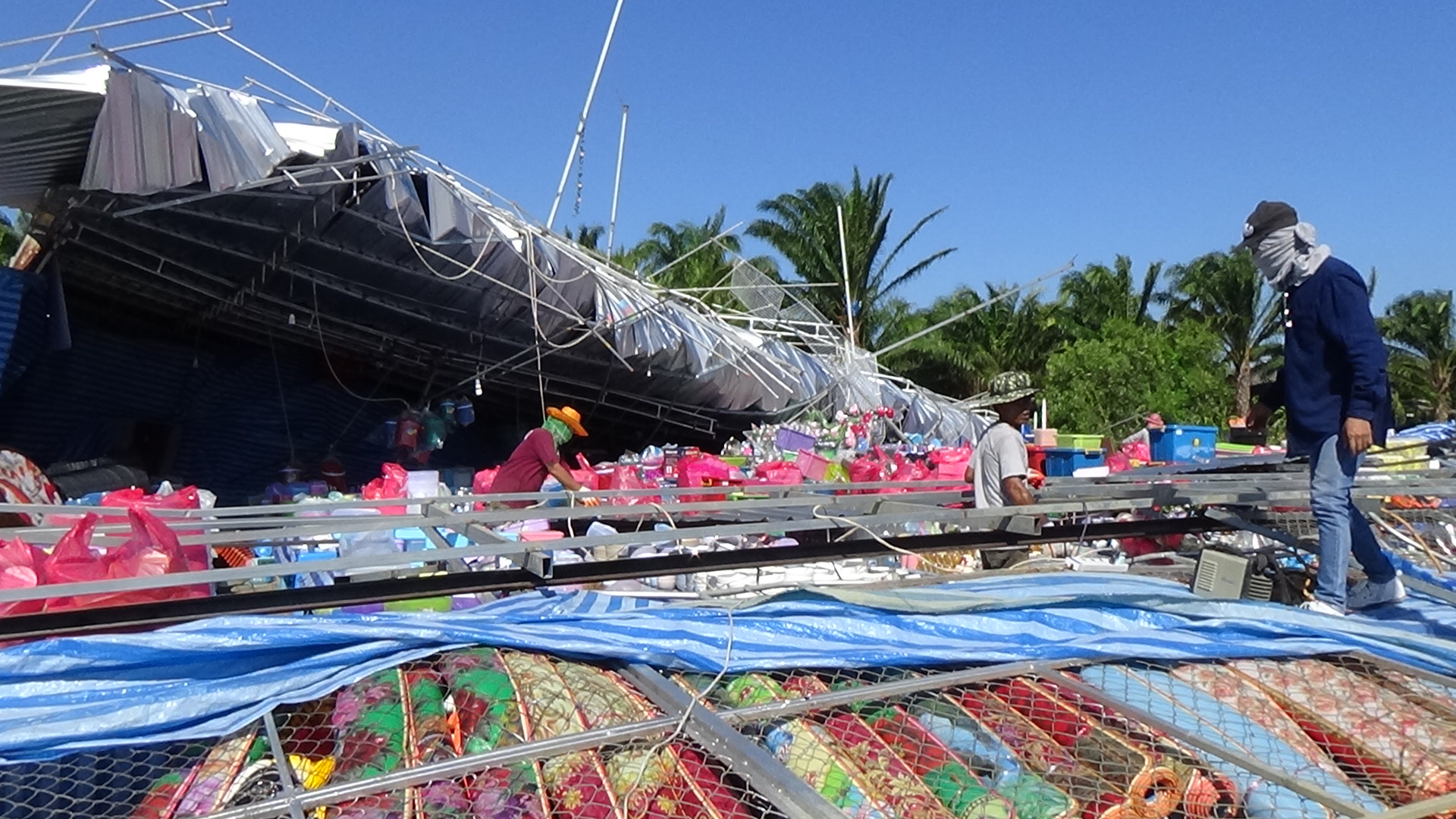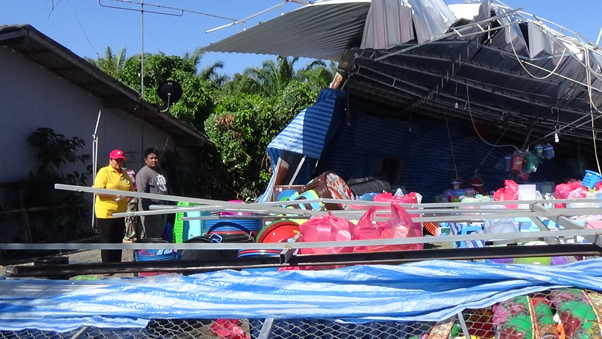ตรัง ลมกรรโชกแรงทำให้โครงหลังคาร้านจำหน่ายสินค้าพังเสียหายเสียหายนับแสน