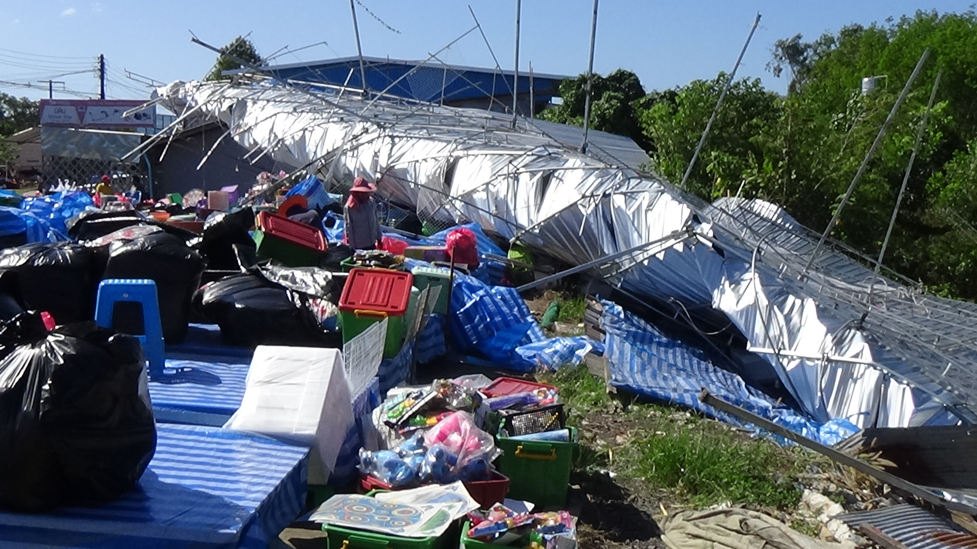 จากการสอบถามนายทวีศักดิ์ แสวงศิลป์ เจ้าของร้านบอกว่า ได้เกิดลมกรรโชกพัดมาอย่างแรงทำให้หลังคาของร้านที่ทำด้วยเมทัลชีสและโครงสร้างที่เป็นเหล็กถูกลมกรรโชกแรงพัดพังเสียหาย ใช้งานไม่ได้ ความเสียหายกว่า 1 แสนบาท อีกทั้งสินค้าภายในร้านได้รับความเสียหายบางส่วน ในวันนี้ได้ทำการตัดรื้อโครงสร้างที่เสียออก เพื่อทำการก่อสร้างใหม่ ทั้งนี้ร้านสินค้านั้นอยู่ในทางลมพัดผ่านจึงทำให้ได้รับความเสียหายดังกล่าว