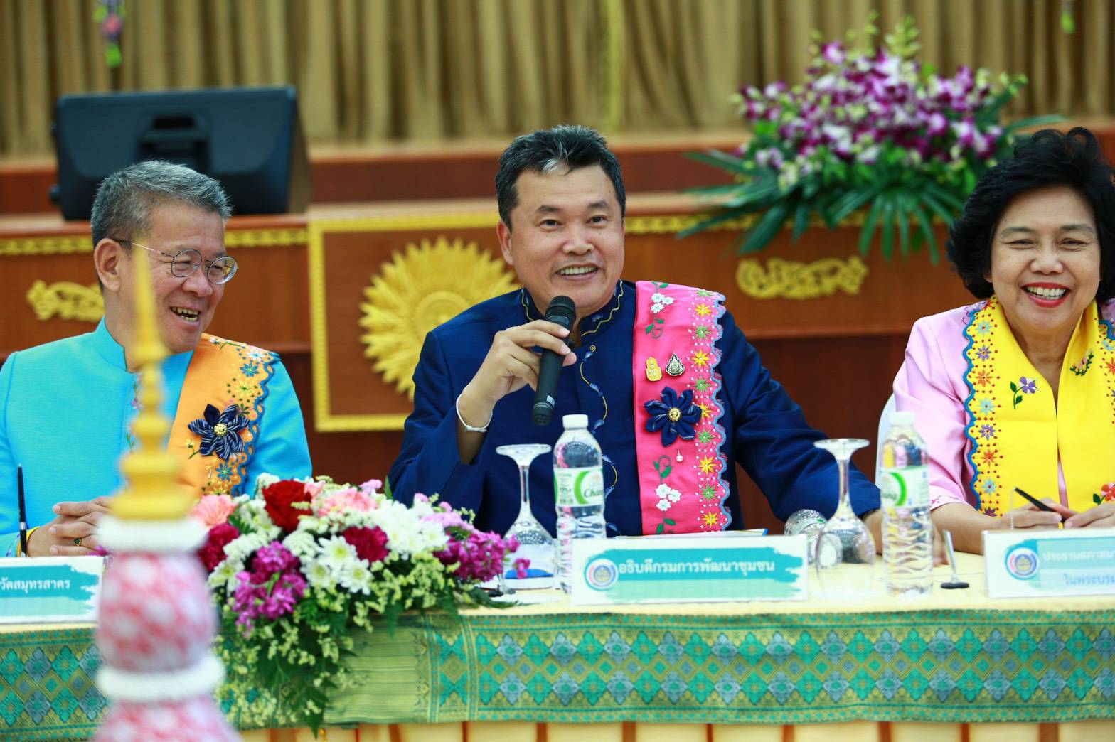 ที่สำคัญที่อยากจะกราบเรียน คือ กระผมเป็นศิษย์เก่าของสมุทรสาคร คือ เคยเป็นปลัดอำเภอที่อำเภอกระทุ่มแบน 8 เดือน ปลัดอำเภอบ้านแพ้ว 2 เดือน จากนั้นก็ย้ายเข้ากรม และขอขอบคุณที่ปรึกษาส่วนตัวของอธิบดีกรมการพัฒนาชุมชนด้วย คือ ท่านพิภู สุโชคชัยกุล ทีมอาสาพัฒนาบ้านเกิดจังหวัดสมุทรสาครและท่านประธานหอการค้า คือ คุณอำไพ หาญไกรวิไลย์ ขอเป็นกำลังใจให้กับผู้จัดงานของจังหวัดสมุทรสาครในครั้งนี้ และผมก็รู้สึกตื้นตันใจกับชาวจังหวัดสมุทรสาครที่ทำให้ผ้าไทยไม่สูญหายไป และยังเป็นการกระตุ้นเศรษฐกิจด้วย โดยเฉพาะการสวมใส่ผ้าปักลายปลาทูสมุทรสาคร หน้าเริด เชิดยิ้ม หรือใส่ผ้าสไบปัก ขอขอบคุณทุกท่านที่มีส่วนร่วมในครั้งนี้