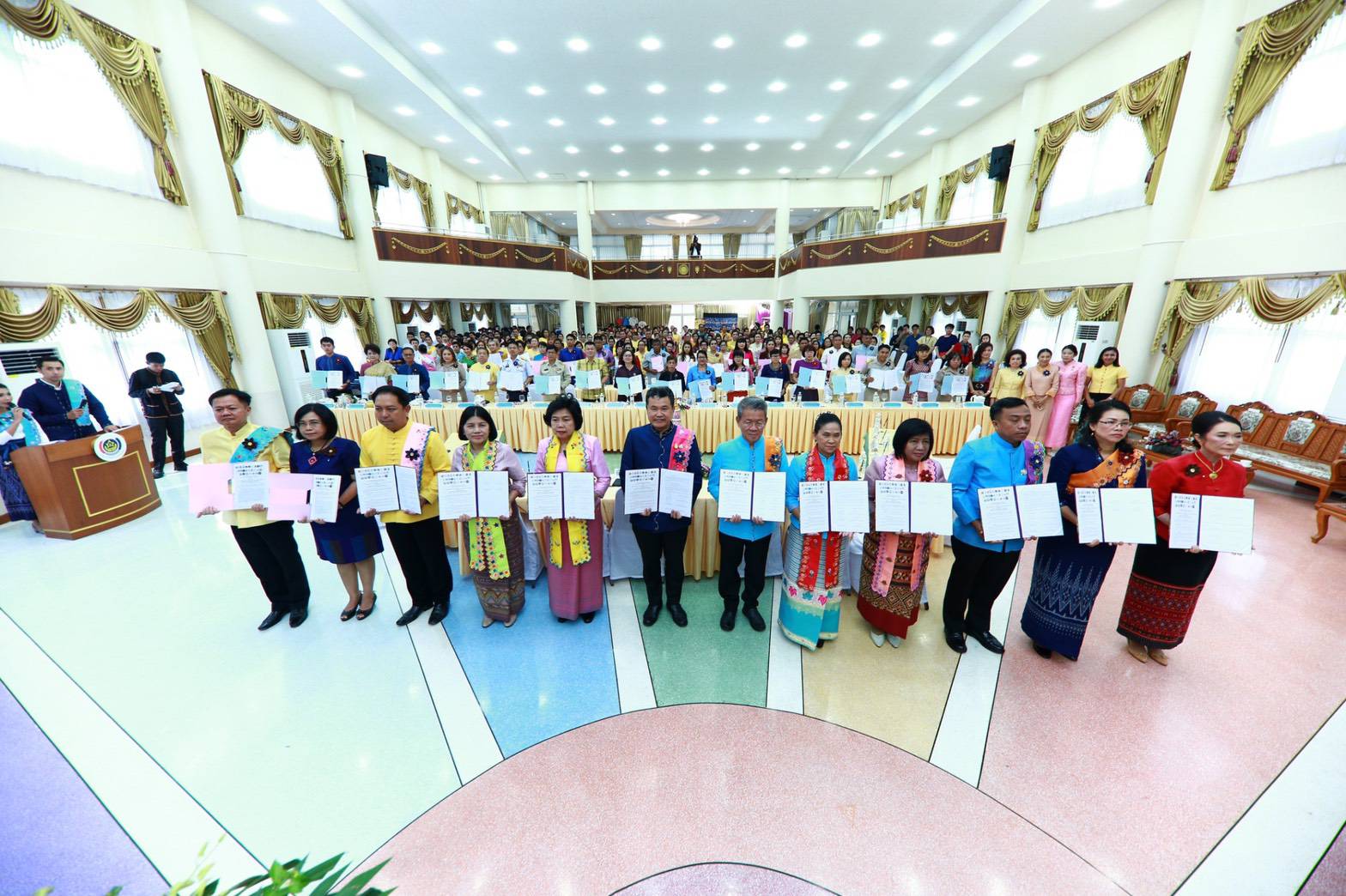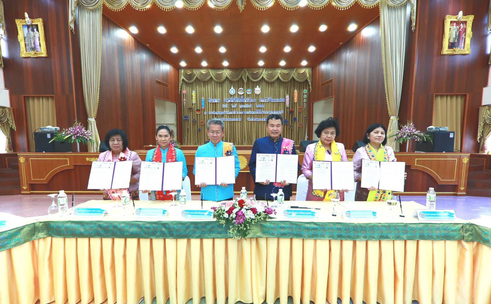 นายสุทธิพงษ์ จุลเจริญ อธิบดีกรมการพัฒนาชุมชน พร้อมด้วย ดร.วันดี กุญชรยาคง จุลเจริญ ประธานสภาสมาคมสตรีแห่งชาติ ในพระบรมราชินูปถัมภ์ และ นางรชตภร โตดิลกเวชช์ ประธานคณะกรรมการบริหารสภาสมาคมสตรีแห่งชาติฯ ร่วมลงนามบันทึกข้อตกลงความร่วมมือ (MOU) กับผู้ว่าราชการจังหวัดสมุทรสาคร นายวีระศักดิ์ วิจิตร์แสงศรี พร้อมด้วย ประธานชมรมแม่บ้านมหาดไทย จังหวัดสมุทรสาคร นางชุติพร วิจิตร์แสงศรี และหัวหน้าส่วนราชการระดับจังหวัด ระดับอำเภอ ผู้นำชุมชน กลุ่มองค์กร ภาคเอกชน ภาคีเครือข่าย ในจังหวัดสมุทรสาคร ร่วมลงนาม จำนวน 40 หน่วยงาน โดยมี นางบุญทิวา วรรณประเวศ ผู้ตรวจราชการกรมการพัฒนาชุมชน เขตตรวจราชการที่ 4 กลุ่มจังหวัดภาคกลางตอนล่าง 2 ร่วมเป็นพยาน โดยก่อนลงนามได้มีการแสดงโชว์อัตลักษณ์ผ้าไทยของจังหวัดสมุทรสาคร ด้วยการเดินแฟชั่นโชว์ผ้าพื้นถิ่นของจังหวัดสมุทรสาคร จากหัวหน้าส่วนราชการระดับจังหวัด ผู้นำกลุ่มองค์กรสตรี ภาคเอกชน ชาวไทรามัญ ร่วมแสดงแบบอย่างสวยงาม