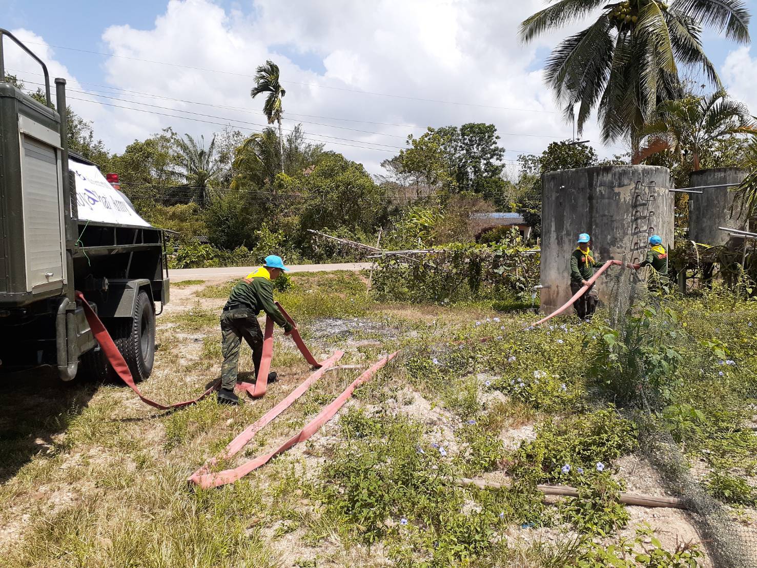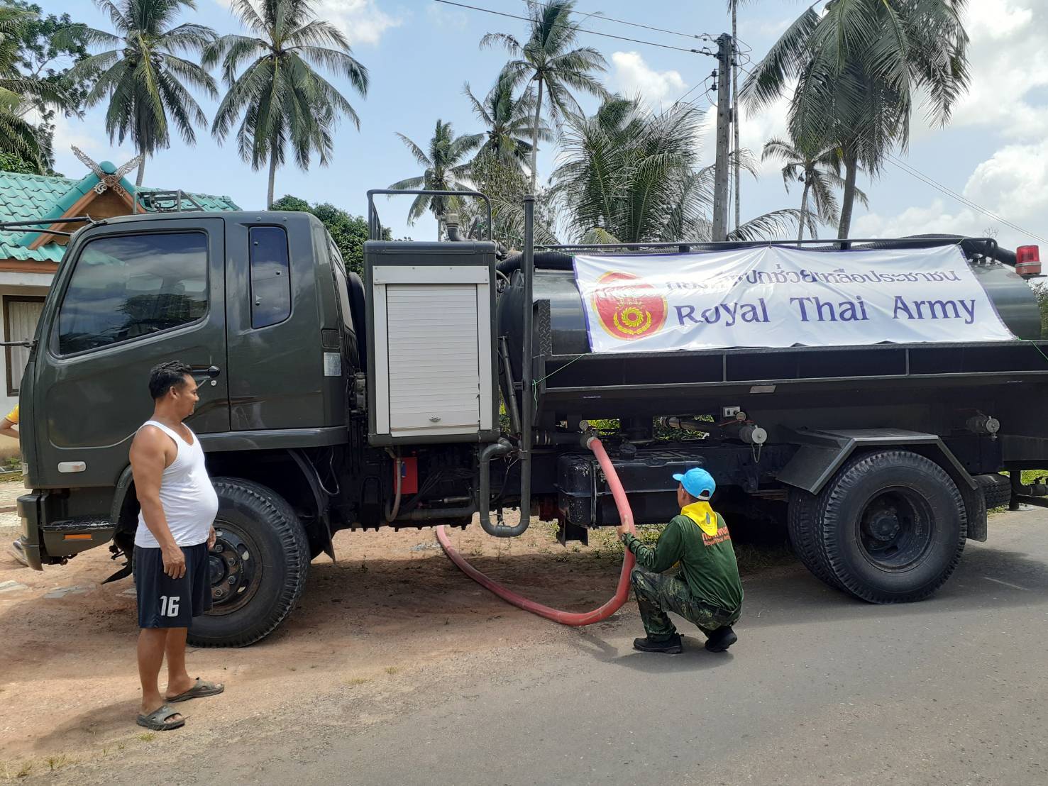 ศูนย์บรรเทาสาธารณภัยมณฑลทหารบกที่ 43 ค่ายเทพสตรีศรีสุนทร อำเภอทุ่งสง จังหวัดนครศรีธรรมราช นำรถบรรทุกน้ำออกช่วยเหลือประชาชนที่กำลังประสบปัญหาภัยแล้งขาดแคลนน้ำอุปโภค บริโภค เนื่องจากแหล่งน้ำทางธรรมชาติแห้งขอด