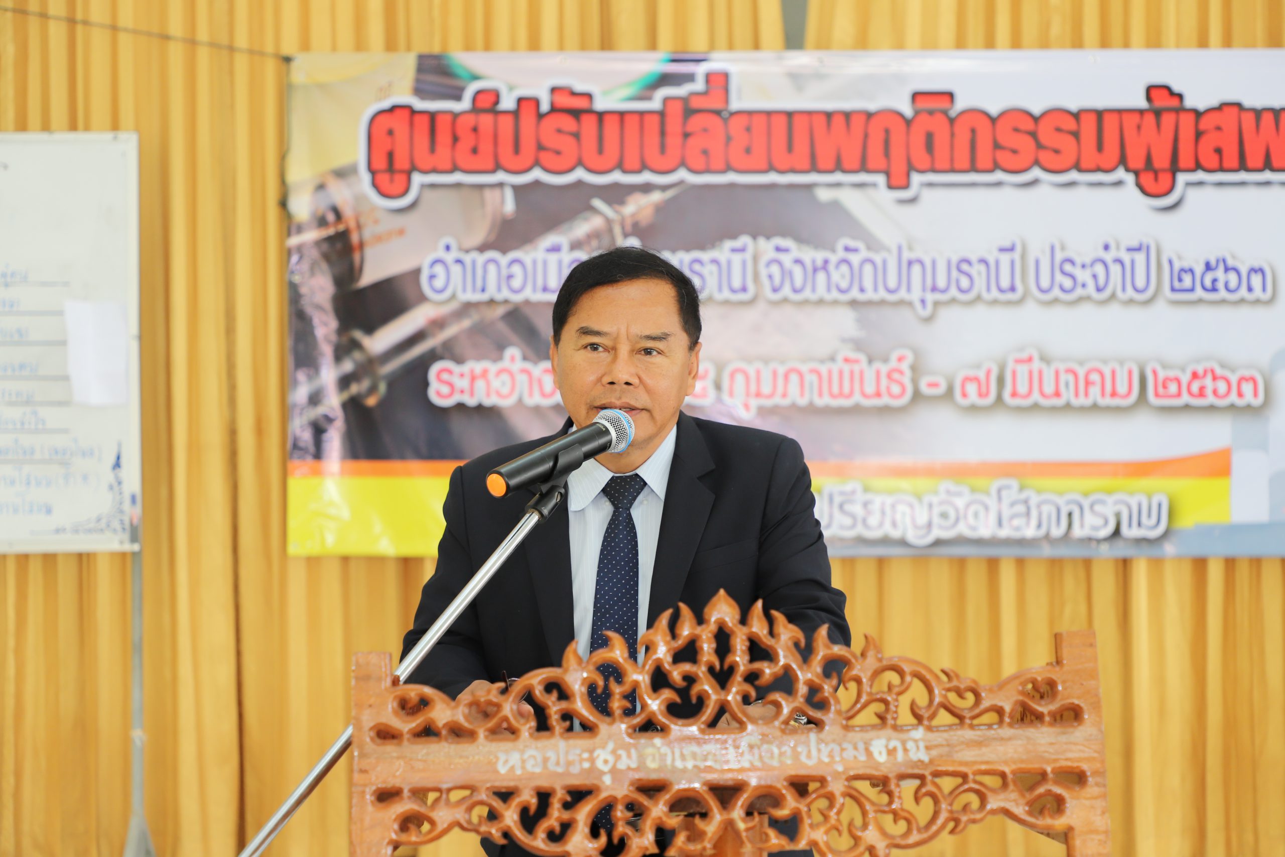 โครงการศูนย์ปรับเปลี่ยนพฤติกรรมของผู้เสพยาเสพติด อำเภอเมืองปทุมธานี (ศป.ปส.อ.เมืองปทุมธานี) จึงได้จัดทำโครงการศูนย์ปรับปรับเปลี่ยนพฤติกรรมของผู้เสพยาเสพติด อำเภอเมืองปทุมธานี จังหวัดปทุมธานี ประจำปีงบประมาณ พ.ศ.2563 ขึ้นระหว่างวันที่ 25 กุมภาพันธ์ – 7 มีนาคม 2563 เพื่อให้ผู้เสพยาเสพติด มีความรู้เรื่องพิษภัยของยาเสพติด พร้อมทั้งเกิดแรงจูงใจในการปรับเปลี่ยนความคิด พฤติกรรมในการดูแลตนเองและลด ละ เลิกยาเสพติดได้ ซึ่งการจัดทำศูนย์ในครั้งนี้ มีผู้เข้ารับการอบรมที่ศูนย์ปรับเปลี่ยนพฤติกรรมฯ จำนวน 50 คน