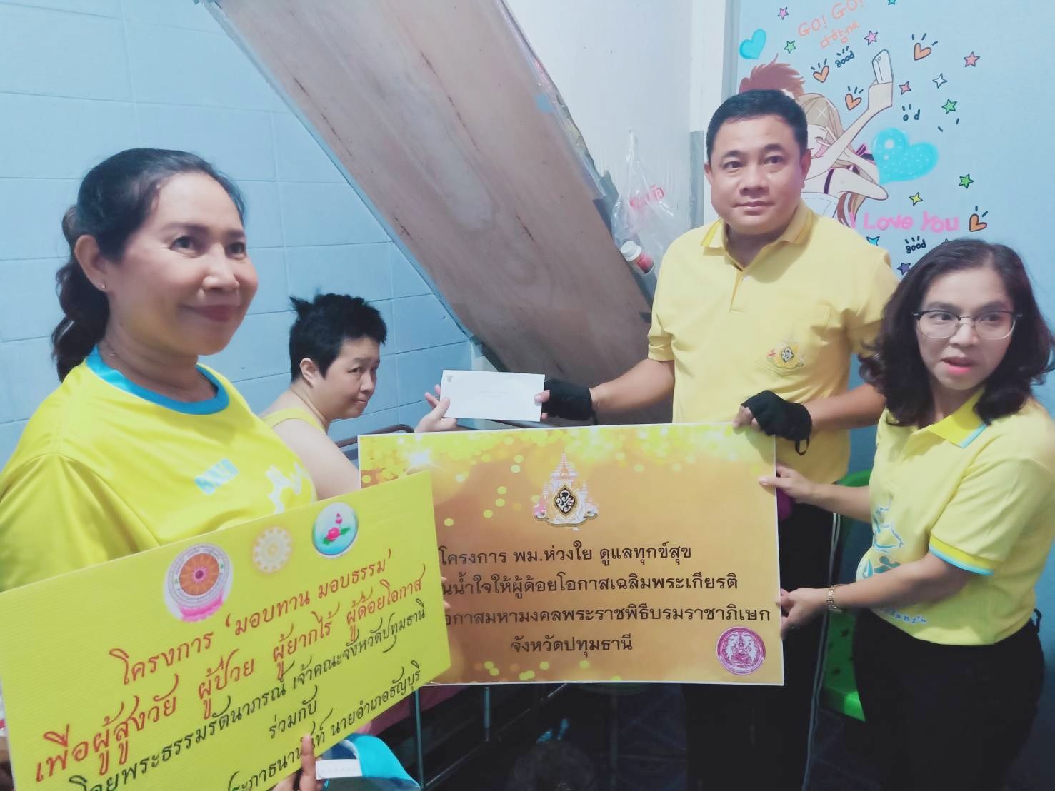 พมจ.ปทุมธานี ร่วมอำเภอธัญบุรี เปิดโครงการ พม. ห่วงใย ดูแลทุกข์สุข ปั่นปันน้ำใจให้ผู้ด้อยโอกาสเฉลิมพระเกียรติ เนื่องในโอกาสมหามงคลพระราชพิธีบรมราชาภิเษก