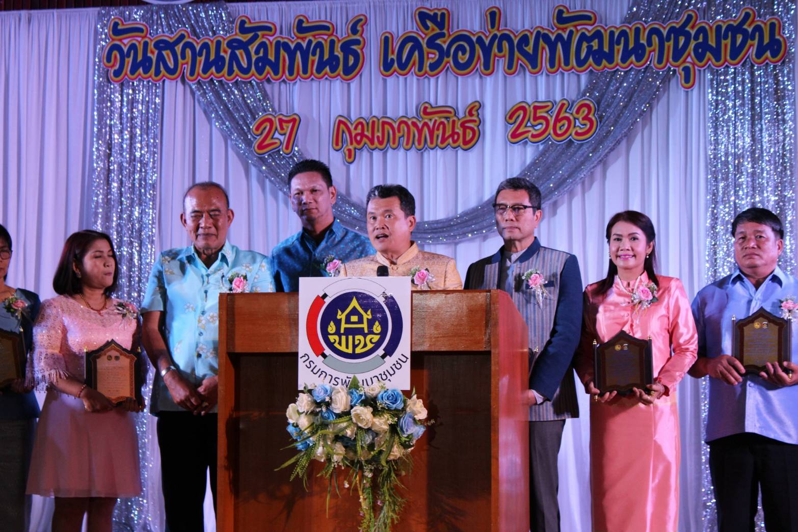 ในการนี้ นายสุทธิพงษ์ จุลเจริญ อธิบดีกรมการพัฒนาชุมชน ได้กล่าวเปิดงานและแสดงความชื่นชมยินดีแก่ผู้ที่ได้รับโล่เชิดชูเกียรติที่ได้อุทิศตน เสียสละเวลา สร้างผลงานที่เป็นประโยชน์แก่ส่วนร่วมเป็นที่ประจักษ์ และขอให้เป็นกำลังสำคัญในการพัฒนาชุมชนต่อไป และชื่นชมการทำงานของคณะกรรการศูนย์ประสานงานองค์การชุมชนที่เป็นพลังสำคัญในการพัฒนาประเทศชาติ โดยเฉพาะชุมชนท้องถิ่นที่เป็นฐานหลักของสังคม ชุมชนจะเข้มแข็ง น่าอยู่ และพึ่งตนเองได้ จะต้องอาศัยความรับผิดชอบ การเรียนรู้ ร่วมคิด ร่วมทำ และถ้าทุกชุมชนท้องถิ่นมุ่งมั่นดำเนินการ ประเทศไทยก็จะพัฒนาอย่างมีทิศทางและเป็นประเทศที่น่าอยู่ที่สุด