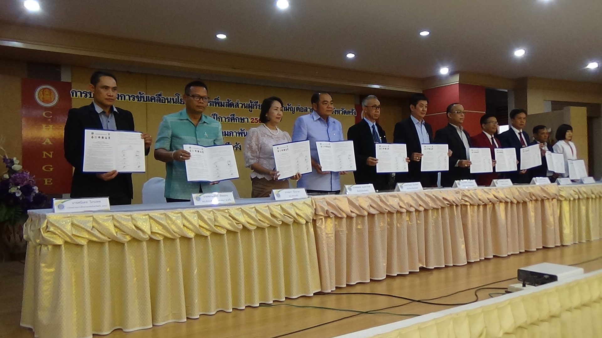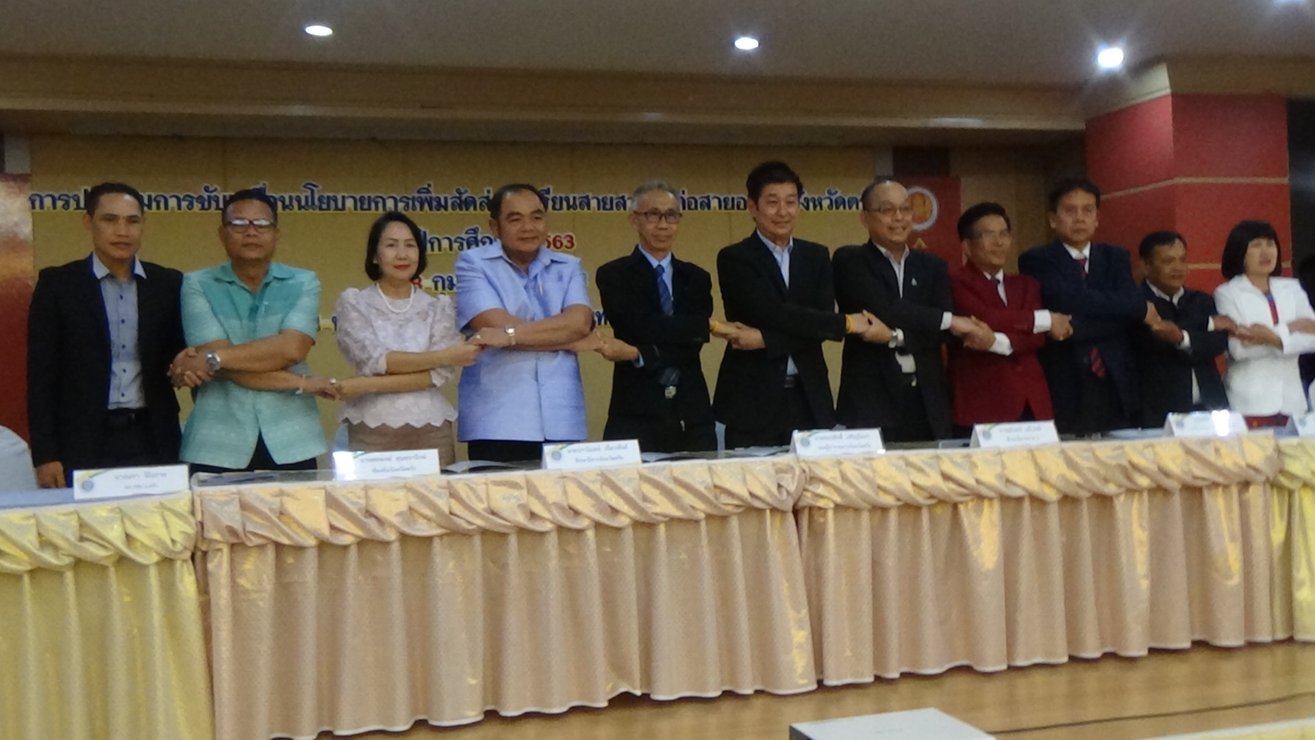 สำนักงานศึกษาธิการจังหวัดตรัง จัดพิธีร่วมลงนามบันทึกข้อตกลงความร่วมมือการขับเคลื่อนนโยบายการเพิ่มสัดส่วนผู้เรียนสายอาชีพ (50:50) ตามนโยบายของกระทรวงศึกษาธิการ ที่ต้องการให้นักเรียนหันมาเรียนทางด้านวิชาชีพเพิ่มมากขึ้น เนื่องจากสายวิชาชีพยังเป็นที่ต้องการของตลาดแรงงาน
