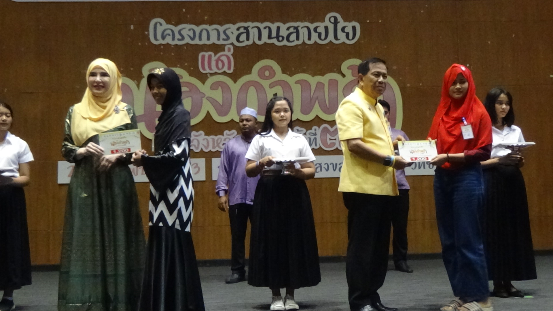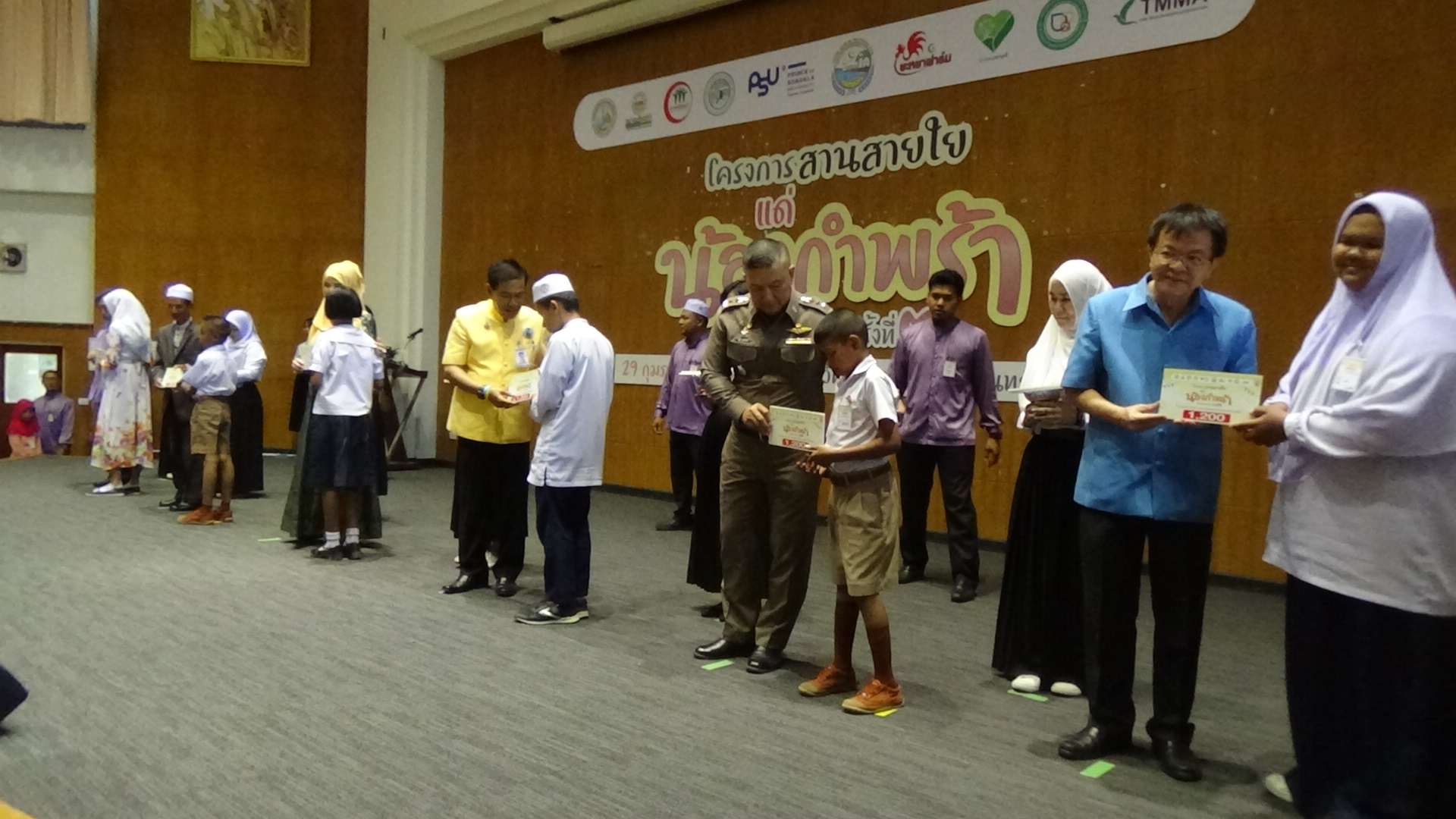 ประกอบ น้องๆกำพร้าในพื้นที่อำเภอเมืองตรัง 21 คน อำเภอกันตัง 19 คน อำเภอสิเกา 19 คน อำเภอวังวิเศษ 2 คน อำเภอห้วยยอด 13 คน อำเภอรัษฎา 3 คน อำเภอย่านตาขาว 14 คน อำเภอปะเหลียน 34 คน และ อำเภอหาดสำราญ 8 คน โดยมีนายลือชัย เจริญทรัพย์ ผู้ว่าราชการจังหวัดตรัง นายกิจ หลีกภัย นายกองค์การบริหารส่วนจังหวัดตรัง ดร.อุดมผล พืชไพบูลย์ รองอธิการบดีมหาวิทยาลัยสงขลานครินทร์ วิทยาเขตตรัง และรองผู้บังคับการตำรวจภูธรจังหวัดตรัง ร่วมมอบทุนการศึกษาในครั้งนี้ด้วย