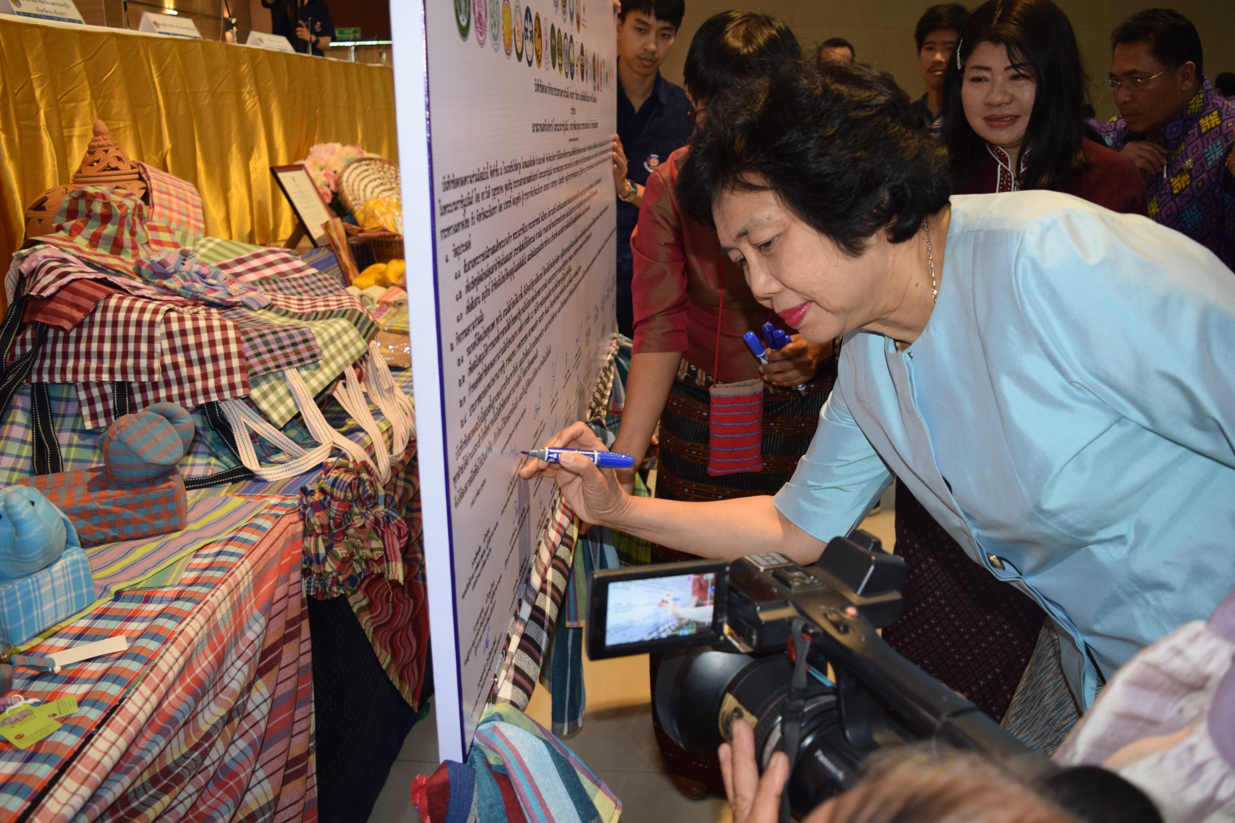 นายโชคชัย แก้วป่อง ได้กล่าวว่า การลงนามครั้งนี้เป็นบันทึกข้อตกลงว่าด้วยการประสานความร่วมมือและสนับสนุนการจัดทำโครงการเพื่อสืบสานพระราชปณิธานสมเด็จพระนางเจ้าสิริกิติ์ พระบรมราชินีนาถ พระบรมราชชนนีพันปีหลวง ในการอนุรักษ์ ส่งเสริมและเผยแพร่ผ้าไทยศิลปะอันล้ำค่าของชาติให้ดำรงอยู่และเพื่อเชิดชูอัตลักษณ์คุณค่าผ้าท้องถิ่นให้เกิดกระแสความนิยมการแต่งกายผ้าไทย และยังสนับสนุนส่งเสริมการสร้างงานสร้างอาชีพและเสริมสร้างรายได้ให้กับกลุ่มสตรีท้องถิ่นและกรมการพัฒนาชุมชนได้ส่งเสริมให้ข้าราชการในสังกัดใส่ผ้าไทยทุกวันด้วย