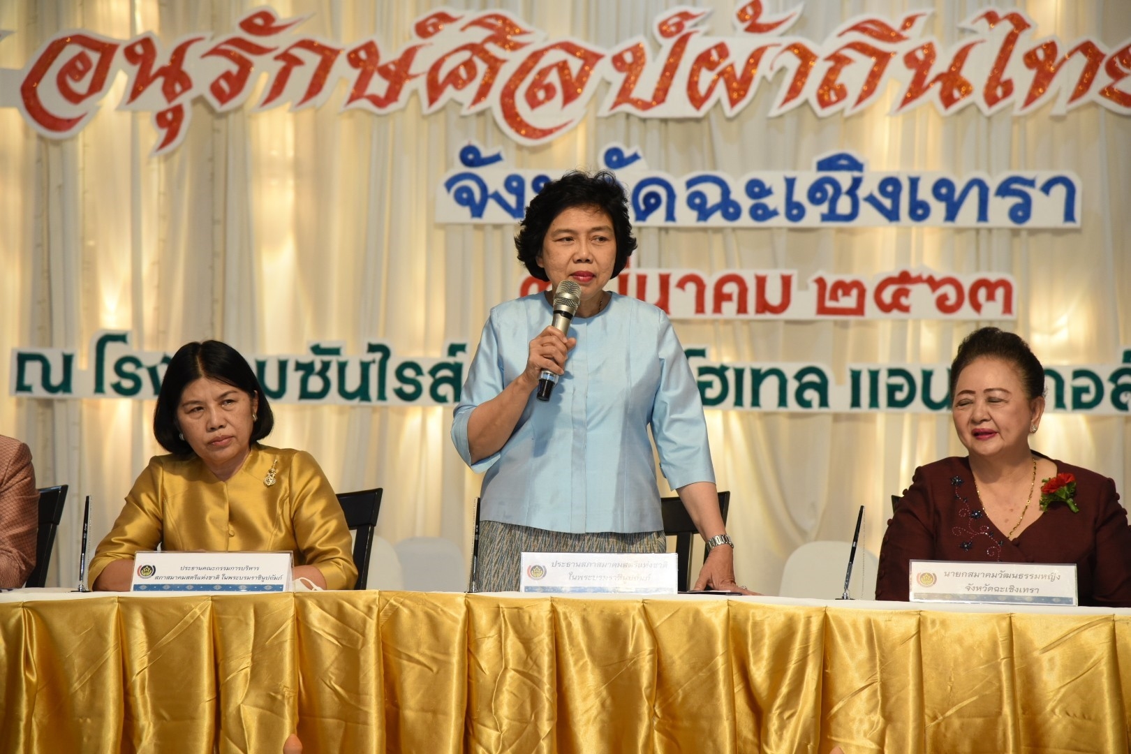 สตรีฉะเชิงเทรา รวมพลังกับ กรมการพัฒนาชุมชน สภาสมาคมสตรีฯ สืบสาน รณรงค์ใส่ผ้าไทย เชิดชูอัตลักษณ์ คุณค่าผ้าท้องถิ่น สร้างรายได้สู่ชุมชน