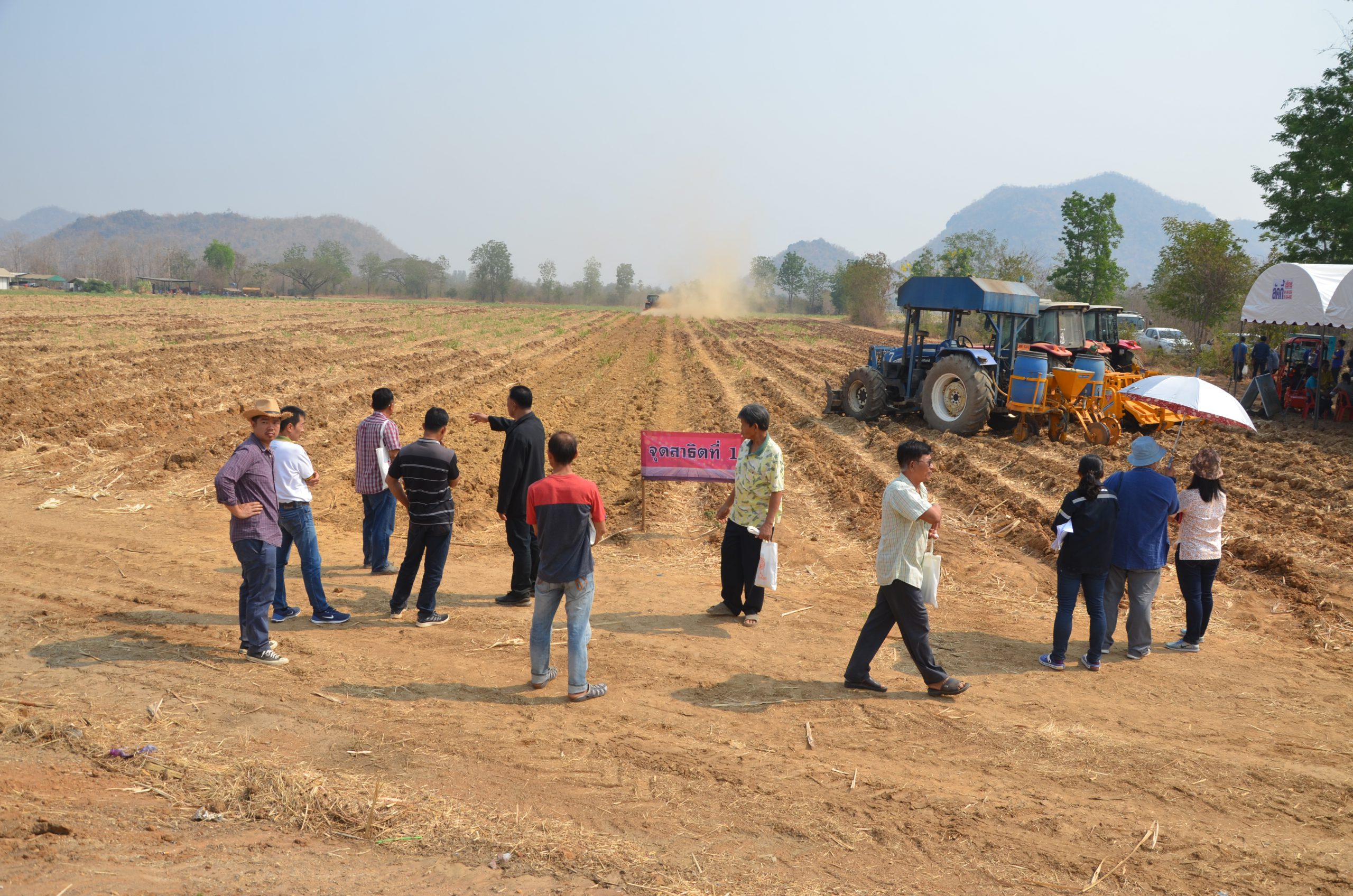 ศูนย์วิจัยและพัฒนาการเกษตรกาญจนบุรี สำนักวิจัยและพัฒนาการเกษตรเขตที่ 5 ร่วมกับ ศูนย์วิจัยพืชไร่สุพรรณบุรี สถาบันวิจัยพืชไร่และพืชทดแทนพลังงาน กรมวิชาการเกษตร จัดงานวันถ่ายทอดเทคโนโลยี (Field day) “การจัดการใบและเศษซากอ้อยหลังเก็บเกี่ยวอ้อยสด” เพื่อถ่ายทอดเทคโนโลยีการจัดการเศษซากอ้อยหลังเก็บเกี่ยวอ้อยสดและก่อนการเตรียมดิน ลดปัญหาการเผาใบ และเศษซากอ้อยของเกษตรกรในพื้นที่จังหวัดกาญจนบุรี และเพิ่มประสิทธิภาพการผลิตให้ได้ผลผลิตอ้อยสดที่มีคุณภาพ และเพียงพอต่อความต้องการของโรงงาน อันจะก่อให้เกิดความยั่งยืนสำหรับอุตสาหกรรมอ้อยและน้ำตาลในอนาคต ภายในงานมีการนำเสนอนิทรรศการภาคโปสเตอร์ การบรรยายให้ความรู้ และการสาธิตการใช้เครื่องจักรกลการเกษตร มีผู้เข้าร่วมงานประกอบด้วย