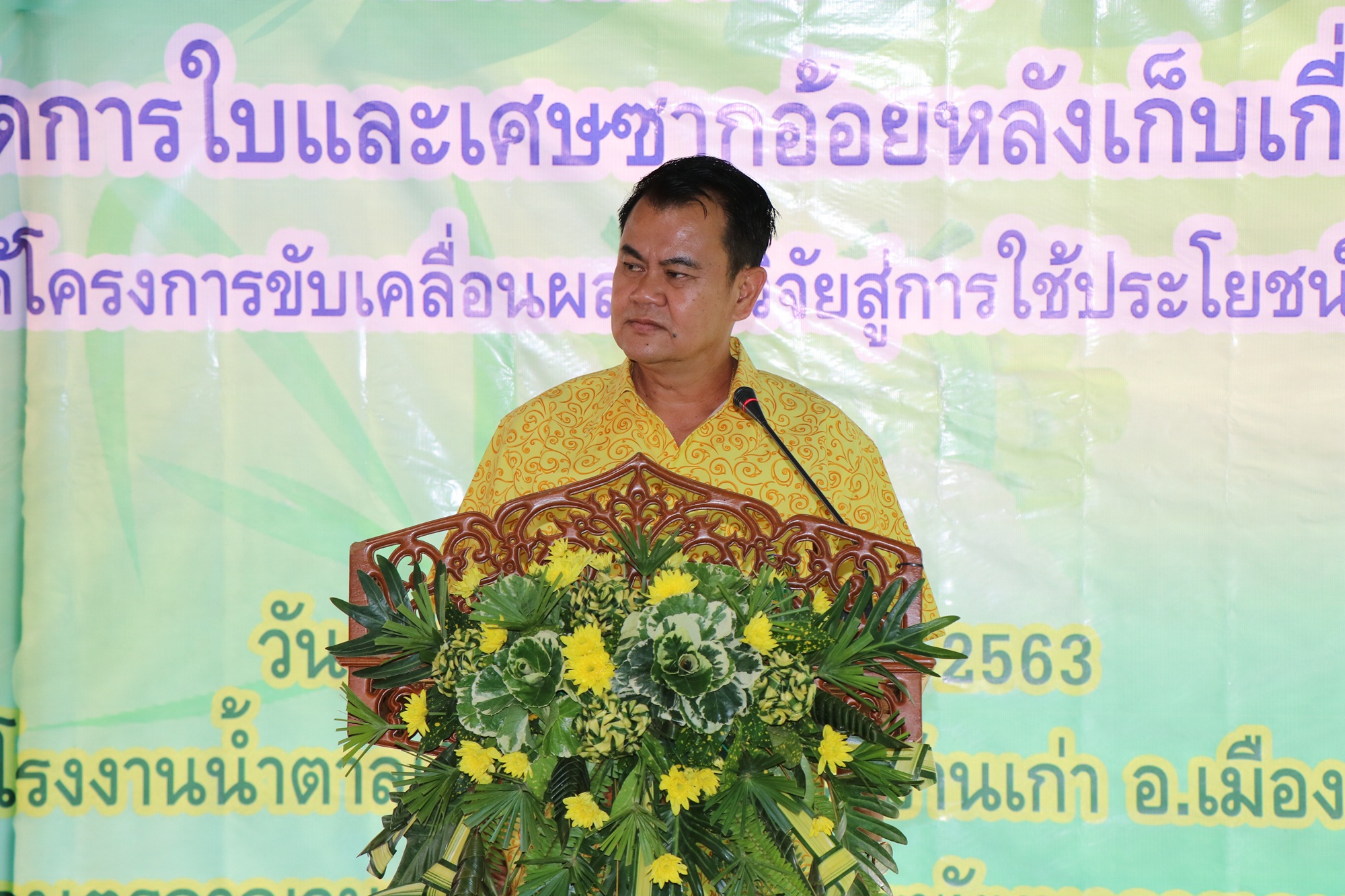 ที่ บริเวณแปลงอ้อยทางเข้าโรงงานน้ำตาลเมืองกาญจน์ ตำบลบ้านเก่า อำเภอเมือง จังหวัดกาญจนบุรี นายปัญญา พุกสุ่น ผู้อำนวยการสำนักวิจัยและพัฒนาการเกษตรเขตที่ 5 เป็นประธานในงานวันถ่ายทอดเทคโนโลยี (Field day) “การจัดการใบและเศษซากอ้อยหลังเก็บเกี่ยวอ้อยสด”ภายใต้โครงการขับเคลื่อนผลงานวิจัยสู่การใช้ประโยชน์ กรมวิชาการเกษตร ปีงบประมาณ 2563 โดยมี นางนิลุบล ทวีกุล ผู้เชี่ยวชาญด้านการจัดการผลิตพืชที่เหมาะสมกับสภาพพื้นที่ (ภาคกลาง) หัวหน้าโครงการพัฒนาต้นแบบการเก็บเกี่ยวอ้อยสดเข้าโรงงานเพื่อลดต้นทุนการผลิตและเป็นมิตรกับสิ่งแวดล้อม พร้อมด้วย นายสงัด ดวงแก้ว ผู้อำนวยการศูนย์วิจัยและพัฒนาการเกษตรกาญจนบุรี หัวหน้าส่วนราชการจากหน่วยงานที่เกี่ยวข้อง เกษตรกรชาวไร่อ้อย เจ้าที่โรงงานน้ำตาล หน่วยงานสังกัดกระทรวงเกษตรและสหกรณ์ในพื้นที่จังหวัดกาญจนบุรี นักวิชาการจากกรมวิชาการเกษตร และหน่วยงานที่เกี่ยวข้อง จำนวน 100 คน