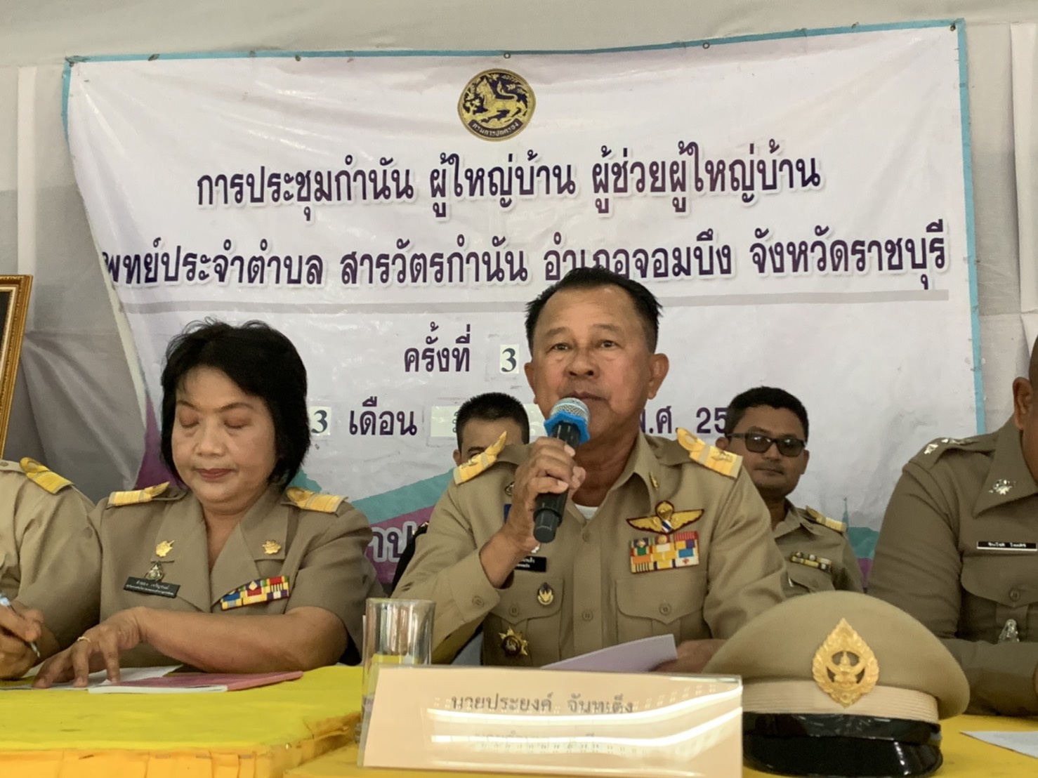นายประยงค์ จันทเต็ง นายอำเภอ จอมบึง เป็นประธานประชุมกำนัน ผู้ใหญ่บ้าน ประจำเดือน ครั้งที่ 3/2563