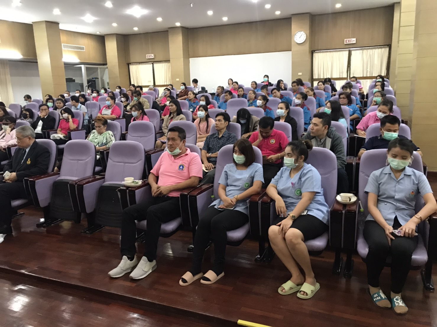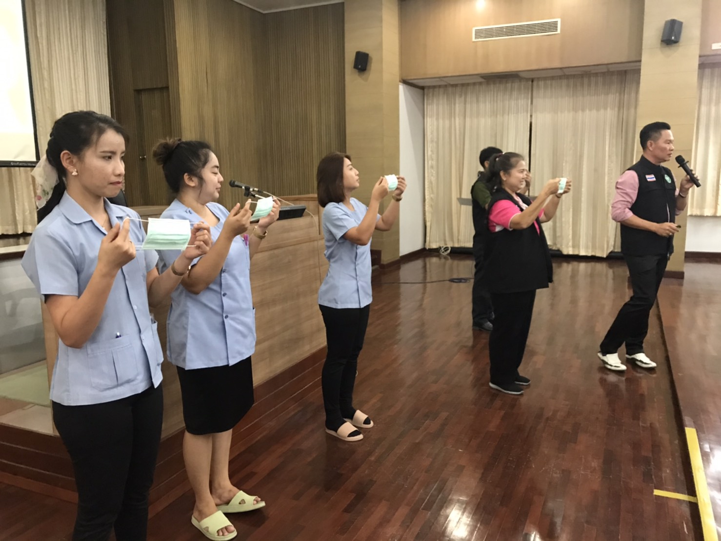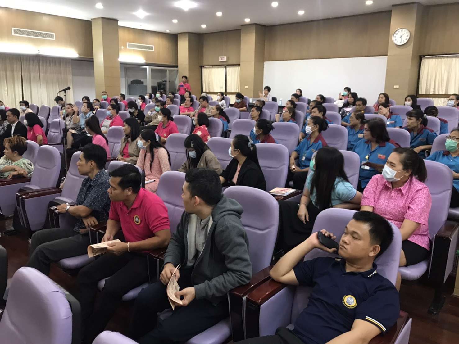 สาธารณสุขอำเภอสามพราน โรงพยาบาลสามพรานและสถาบันพัฒนาครู คณาจารย์และบุคลากรทางการศึกษา จัดอบรมให้ความรู้ เรื่องการป้องกันโรคCOVID-19 โดยมี นายพัชรวัฒน์ พัชรเกียรติกนก ผู้ช่วยสาธารณสุขอำเภอสามพราน นางพัชรี เกษรบุญนาค หัวหน้ากลุ่มงานบริการด้านปฐมภูมิและองค์รวม นายอดิเรก ศรีประเสริฐ นักวิชาการสาธารณสุขชำนาญการ หัวหน้างานควบคุมโรคติดต่อ สำนักงานสาธารณสุขอำเภอสามพราน และทีมรพ.สต.บ้านท่าพูด เป็นวิทยากรให้ความรู้ ซึ่งมี นายศัจธร วัฒนะมงคล ผู้อำนวยการสถาบันพัฒนาครู คณาจารย์และบุคลากรทางการศึกษา นำอาจารย์ เจ้าหน้าที่ และแม่บ้าน ที่จะต้องต้อนรับคณะฝึกอบรม ที่จะมาใช้สถานที่สถาบันแห่งนี้ โดยคณะวิทยากร ได้ให้ความรู้เรื่องการใส่หน้ากากอนามัย การทิ้งที่ถูกวิธี การทำความสะอาด มือตรวจวัดไข้ด้วยอุปกรณืทางการแพทย์ เช็ดทำความสะอาดห้องประชุมด้วยแอลกอฮอล์ คัดกรองผู้ป่วยหากพบมีไข้ให้รีบแยกออกจากห้องประชุมทันที่ ส่วนด้านการบริโภคอาหาร ควรกินร้อน ใช้ช้อนกลาง