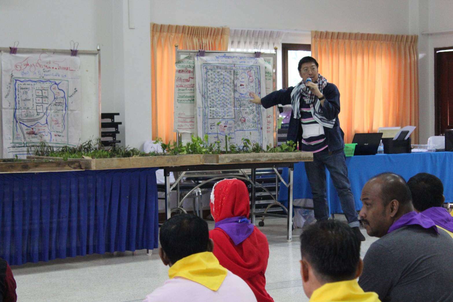โอกาสนี้ อธิบดี พช. พร้อมคณะผู้บริหารกรมฯ และพัฒนาการจังหวัด พัฒนาการอำเภอ ได้ร่วมให้กำลังใจและรับฟังการนำเสนอการออกแบบพื้นที่ของผู้เข้าร่วมโครงการในการฝึกอบรมเชิงปฏิบัติการหลักสูตรการออกแบบเชิงภูมิสังคมไทยเพื่อการพึ่งตนเองและรองรับภัยพิบัติ มีการฝึกอบรม 5 วัน เนื้อหาวิชาการ และกิจกรรมในการฝึกอบรมครั้งนี้ ประกอบด้วย การออกแบบเชิงภูมิสังคมไทย ตามแนวพระราชดำริ