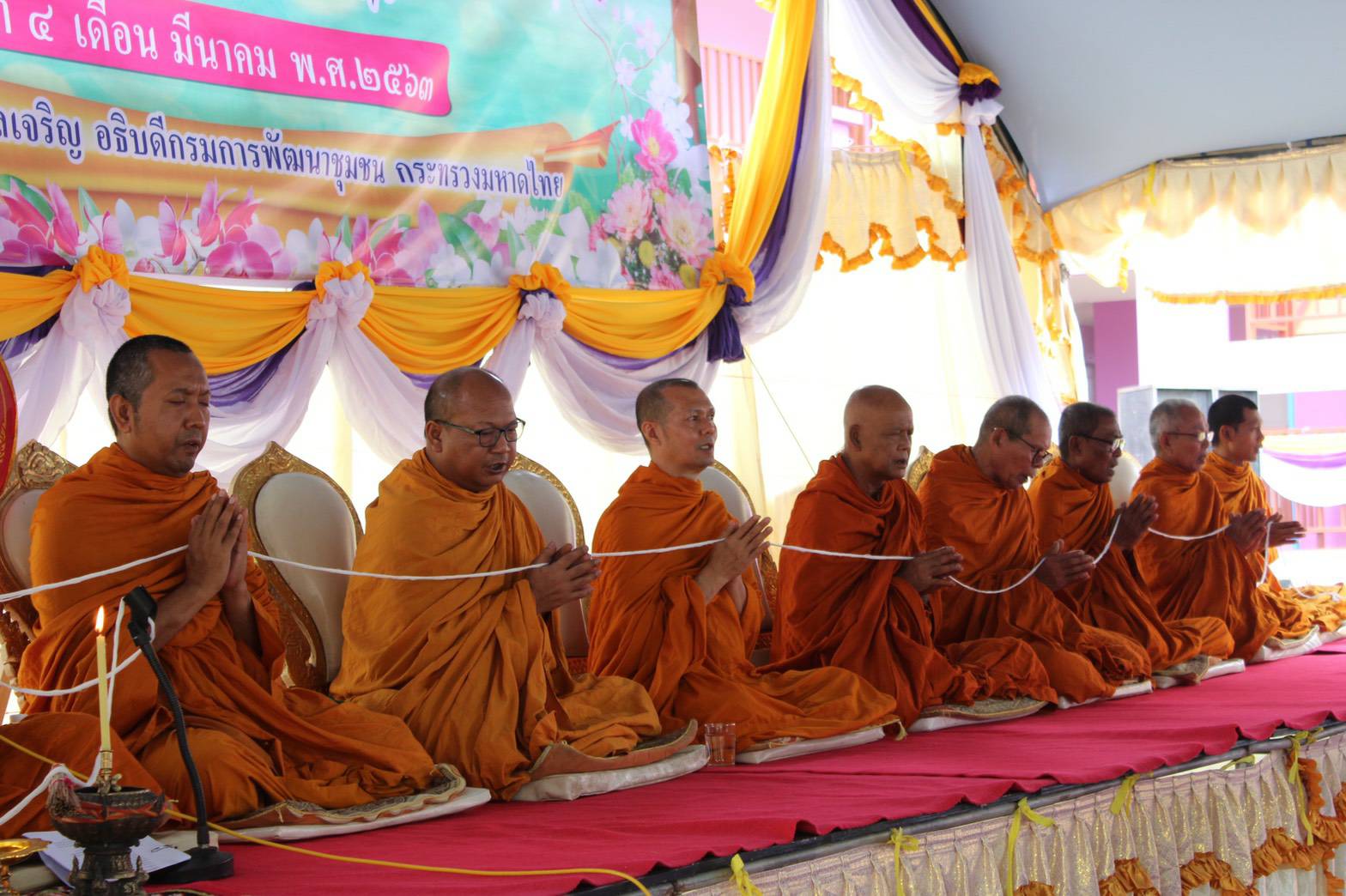 โอกาสนี้ อธิบดีกรมการพัฒนาชุมชน ได้กล่าวกับผู้ร่วมพิธี ว่างานพัฒนาชุมชน เป็นงานที่ครอบคลุมทุกมิติเกี่ยวข้องกับชีวิตคน ทั้งด้านสุขภาพ เศรษฐกิจ การทำมาหากิน จิตใจ ศิลปะวัฒนธรรม ศาสนา และสถาบันต่างๆ เราต้องทำความเข้าใจเนื้องานของกรมฯ ให้ถ่องแท้ก่อนที่จะไปแนะนำชาวบ้าน คำว่า “พัฒนา” คือการทำให้ดีขึ้น ทำให้ชีวิตความเป็นอยู่ของพี่น้องประชาชนมีความเป็นอยู่ที่ดี ทำให้คนเข้าสู่สังคมอุดมคติ มีความมั่นคง และยั่งยืน เรื่องใหญ่ที่จะทำให้คนเชื่อก็ต้องเป็นแบบอย่างให้เขาได้ ต้องมีความรู้ก่อน โดยต้องใช้คนให้ถูกกับงาน Put the right man on the right job ดังนั้นเราอยากรู้เรื่องอะไรต้องไปแสวงหา ศึกษาให้ถ่องแท้ก่อนถึงจะมาแนะนำชาวบ้านได้ ยกตัวอย่างเช่น การทำโคกหนองนา ในวันนี้ เราต้องสื่อสารกับชาวบ้านให้ชัดเจน ดังคำขวัญพระราชทาน “พัฒนาคือสร้างสรรค์” ของพระบาทสมเด็จพระบรมชนกาธิเบศร มหาภูมิพลอดุลยเดชมหาราช บรมนาถบพิตร ในหลวงรัชกาลที่ 9 ที่ได้พระราชทานไว้ เพื่อให้ประชาชนมีความตื่นตัว ในการนำหลักปรัชญาของเศรษฐกิจพอเพียงมาใช้เป็นแนวทางหลักในการดำเนินชีวิต เช่น ในระดับครัวเรือน มีการปลูกพืชผักสวนครัวรั้วกินได้ทุกครัวเรือน และในการประกอบอาชีพ ได้นำเอาศาสตร์พระราชา รูปแบบ โคก หนอง นา โมเดล มาบริหารจัดการที่ดินให้สามารถอยู่ได้อย่างยั่งยืน การที่จะทำงานเพื่อชุมชนจะประสบผลสำเร็จนั้น กรมการพัฒนาชุมชนทำคนเดียวสำเร็จไม่ได้แน่นอน ต้องบูรณาการกับภาคส่วนต่าง ๆ เพราะคนของ พช. ไม่ได้รู้ไปทุกเรื่อง ดั่งเพลงมาร์ช พช. ที่ว่า “เอาเรี่ยวแรงงานลงหว่านดิน หากินเป็นสุข เราบุกเราทำไม่ทำไม่ร่ำไร สร้างไว้ยิ่งกว่าเก่า เกิดความสมบูรณ์พูนสุขพลัน เราร่วมกันช่วยปกครอง ท้องถิ่นเราหนักแรงแบ่งเบา เพราะสามัคคี” จะเห็นได้ว่าเราต้องทำงาน บูรณาการร่วมกับฝ่ายปกครอง กรมส่งเสริมการปกครองท้องถิ่น ตลอดจนผู้นำชุมชน และหน่วยงานภาครัฐ และเอกชน ต้องบูรณาการหลอมรวมจิตใจ หลอมรวมทัศนคติ ออกแรงเหมือนงานชักเย่อ มีเป้าหมายเดียวกัน เพื่อเอาชนะปัญหาอุปสรรคต่างๆ ของพี่น้องประชาชน และของประเทศ คน พช. ต้องทำตัวเหมือนรวงข้าวสุกเหลืองอร่าม แม้จะเป็นข้าวที่แข็งแรง ก็ยังโน้มลงหาแผ่นดิน เปรียบเสมือนความอ่อนน้อมถ่อมตน เป็นคนที่เมื่อผู้คนได้สัมผัสก็จะยกย่องให้เกียรติ จะทำให้ได้รับความร่วมมือจากชาวบ้าน ผู้นำชุมชน ตลอดจนภาคีการพัฒนาทั้งภาครัฐ และเอกชนและให้ทำตัวเหมือนนายอินทร์ผู้ปิดทองหลังพระ ร่วมสร้างประโยชน์สุขให้เกิดกับประชาชน อย่างมั่นคง มั่งค