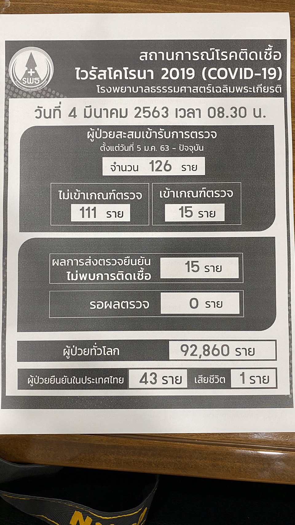 เมื่อเวลา 13.30 น. วันที่ 4 มี.ค. 63 ที่ห้องประชุมชั้น 7 โรงพยาบาลธรรมศาสตร์เฉลิมพระเกียรติ ต.คลองหนึ่ง อ.คลองหลวง จ.ปทุมธานี รศ.นพ.พฤหัส ต่ออุดม ผู้อำนวยการ รพ.ธรรมศาสตร์เฉลิมพระเกียรติ กล่าวว่า จากที่เมื่อวันที่ 3 มี.ค.63 โรงพยาบาลธรรมศาสตร์เฉลิมพระเกียรติ จ.ปทุมธานี ได้เผยแพร่แถลงการณ์ เรื่อง กรณีการบริหารจัดการการระบาดของโรคติดเชื้อไวรัสโคโรน่าสายพันธุ์ใหม่ 2019 (COVID-19)