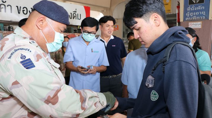 ที่ สถานีขนส่งผู้โดยสารจังหวัดกาญจนบุรี อำเภอเมือง จังหวัดกาญจนบุรี ได้มีการตั้งจุดคัดกรอง Covid–19 ด้วยการนำเจ้าหน้าที่จากสำนักงานสาธารณสุขจังหวัดกาญจนบุรี พร้อมอุปกรณ์ตรวจวัดอุณหภูมินำไปตรวจประชาชนผู้ใช้บริการรถโดยสารภายในสถานีขนส่งจังหวัดกาญจนบุรี โดยได้ติดตั้งจุดให้เข้าไปได้ทางด้านหน้าและด้านหลังเท่านั้น ทั้งนี้ นายจีระเกียรติ ภูมิสวัสดิ์ ผู้ว่าราชการจังหวัดกาญจนบุรี ได้ลงพื้นที่ตรวจเยี่ยมและได้ร่วมตรวจคัดกรองประชาชน พร้อมด้วย นายอธิสรรค์ อินทร์ตรา หัวหน้าสำนักงานจังหวัดกาญจนบุรี นายวิฑูรย์ สิรินุกูล นายอำเภอเมืองกาญจนบุรี นางสาวดวงแข ธรรมครุฑ ขนส่งจังหวัดกาญจนบุรี และสาธารณสุข อำเภอเมืองกาญจนบุรี ร่วมกับสำนักงานสาธารณสุขจังหวัดกาญจนบุรี สำนักงานขนส่งจังหวัดกาญจนบุรี ดำเนินการตามมาตรการการป้องกันการแพร่ระบาดของไวรัส COVID-19 โดยจัดให้มีจุดคัดกรองประชาชน และนักท่องเที่ยว บริเวณด้านหน้าทางเข้าภายในอาคารสถานขนส่งผู้โดยสารจังหวัดกาญจนบุรี เพื่อตรวจวัดอุณหภูมิประชาชนที่มาใช้บริการ พร้อมมีบริการเจลล้างมือประจำที่จุดคัดกรองเพื่อทำความสะอาดและป้องกันการแพร่ระบาดของเชื้อไวรัส COVID-19 ในเบื้องต้น