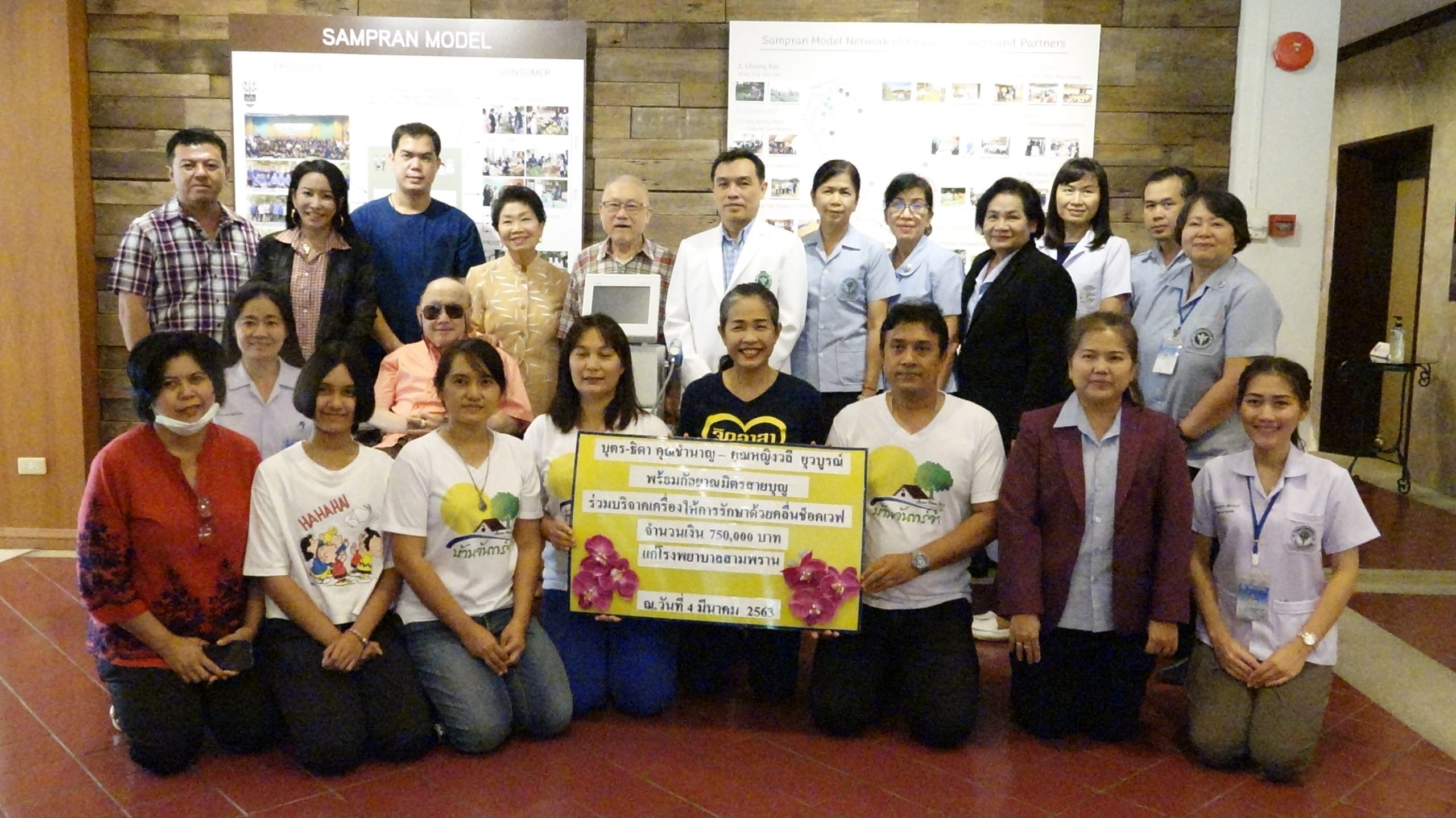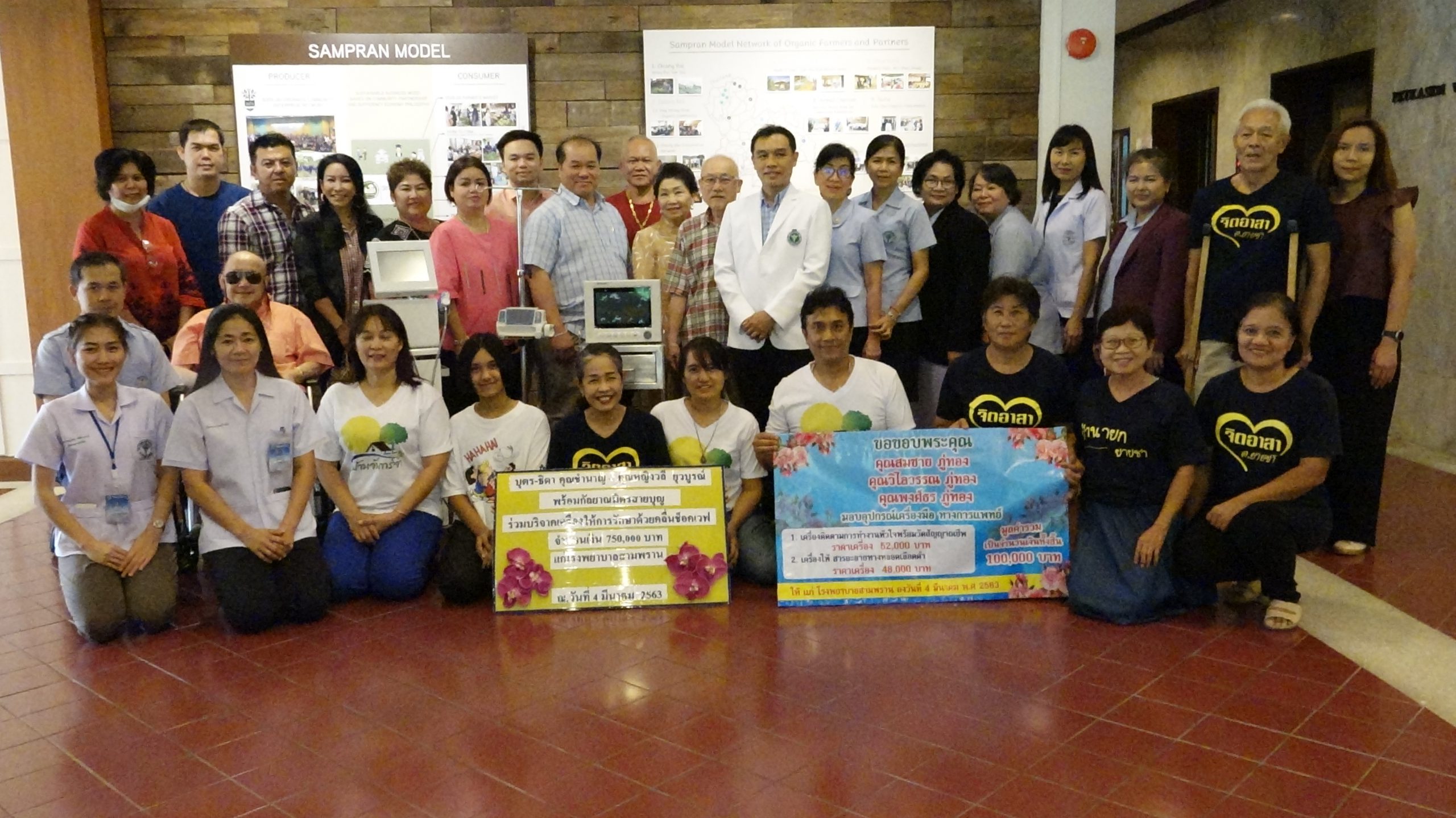 และรับมอบบริจาคเครื่องมือแพทย์ จำนวน 100,000บาท จาก นายสมชาย ภู่ทอง นายกอบต.บ้านใหม่ อำเภอสามพราน พร้อมด้วย คุณวิไลวรรณ คุณพงศ์ธร ภู่ทอง ภรรยาและบุตร