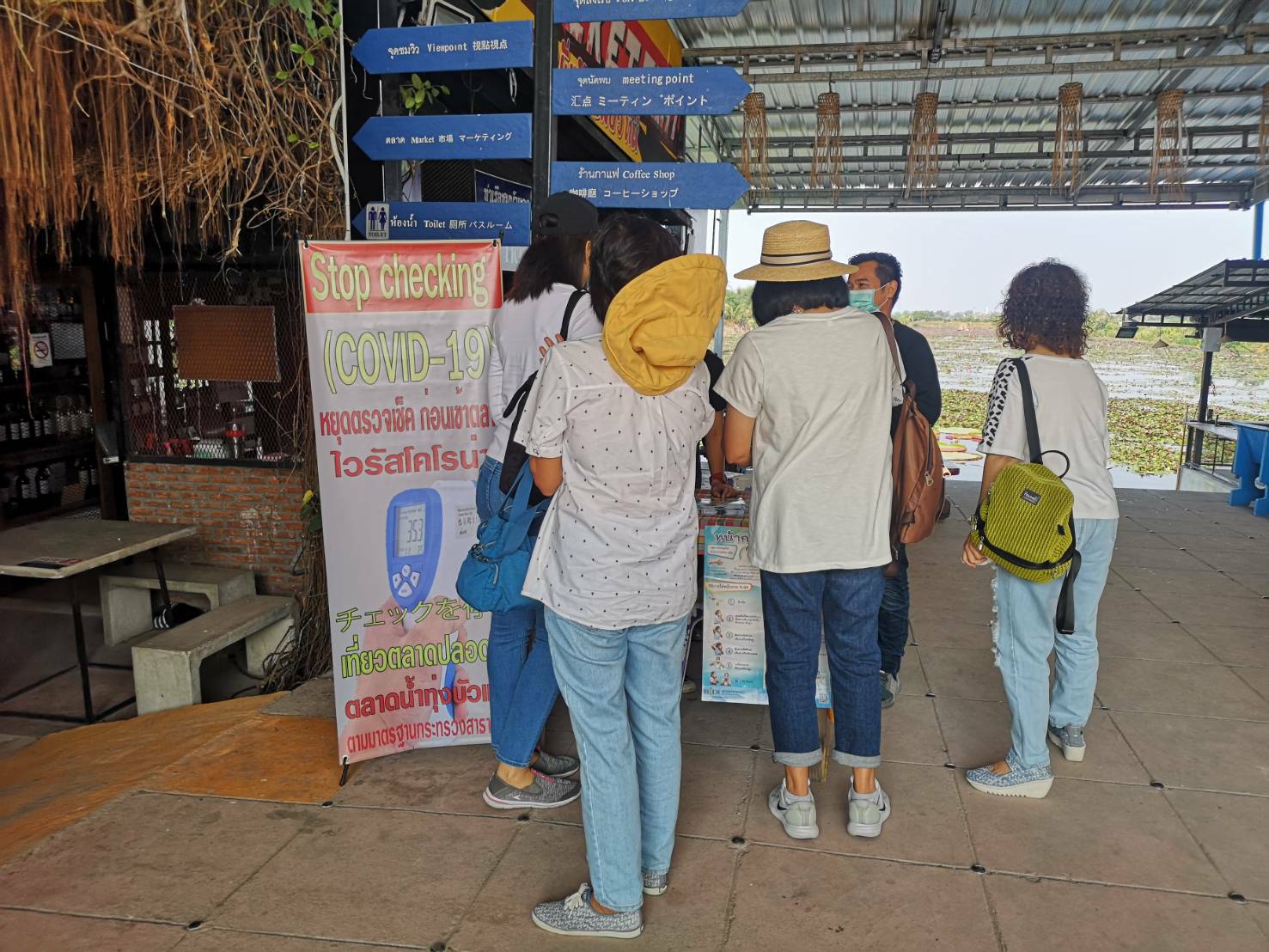 นางสาวสรียา บุญมาก ผู้อำนวยการการท่องเที่ยวแห่งประเทศไทย (ททท.) สำนักงานราชบุรี เปิดเผยว่า ในช่วงของการเผยแพร่ประชาสัมพันธ์และรณรงค์ให้ทุกคนทุกหน่วยงานป้องกันการแพร่กระจายของเชื้อไวรัสโควิด-19 ผู้ประกอบการการท่องเที่ยวต่างให้ความร่วมมือตามมาตรฐานของกระทรวงสาธารณสุข ตลาดน้ำทุ่งบัวแดง จังหวัดนครปฐม เป็นแหล่งท่องเที่ยวนั่งเรือพายชมดอกบัวแดง ซึ่งกำลังเป็นที่นิยมของนักท่องเที่ยวชาวญี่ปุ่นในขณะนี้ ได้นำร่องคัดกรองนักท่องเที่ยวทั้งชาวไทยและชาวต่างประเทศอย่างเข้มงวด เพื่อป้องกันการตกเป็นแหล่งแพร่กระจายเชื้อสู่สังคมในมุมกว้าง โดยมีจุดบริการเจลล้างมือและใช้เครื่องมือตรวจวัดอุณหภูมินักท่องเที่ยวทุกคนร่วมกับการซักประวัติ ที่ผ่านมา พบนักท่องเที่ยวชาวญี่ปุ่นและชาวไต้หวันมีอุณหภูมิร่างกายสูงเกิน 37.5 องศาเซลเซียส จึงส่งมอบตัวให้กับสาธารณสุขอำเภอบางเลนตรวจเช็คต่อไป