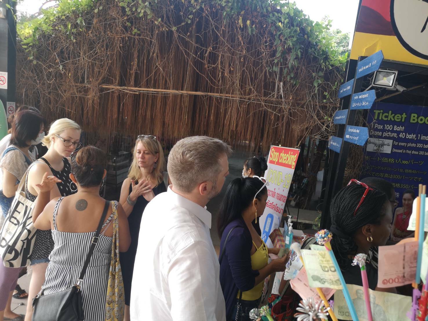 ทางด้าน นายธานินทร์ เทพสุรินทร์ เจ้าของกิจการ ยอมรับว่า มีนักท่องเที่ยวชาวไทยบางรายไม่พอใจและปฏิเสธการตรวจอุณหภูมิ ซึ่งก็ทำใจไว้แล้ว แต่ส่วนใหญ่ให้ความร่วมมือเป็นอย่างดีและชื่นชมการปฏิบัติงาน เพราะตนเห็นว่า มาตรการคัดกรองนักท่องเที่ยวนี้ เป็นอีกหนึ่งความรับผิดชอบต่อสังคมของผู้ประกอบการท่องเที่ยว เนื่องจากผู้ที่ติดเชื้อโดยไม่รู้ตัวอาจจะแสดงอาการออกเมื่อไหร่ ณ จุดใดก็ได้