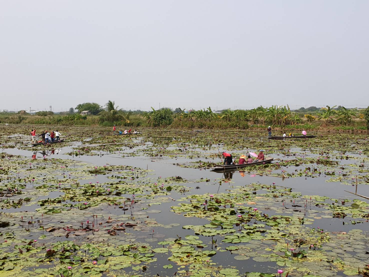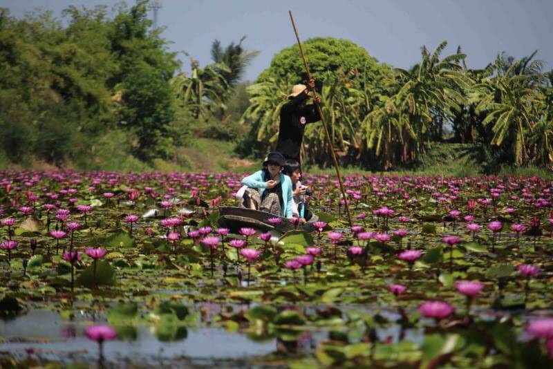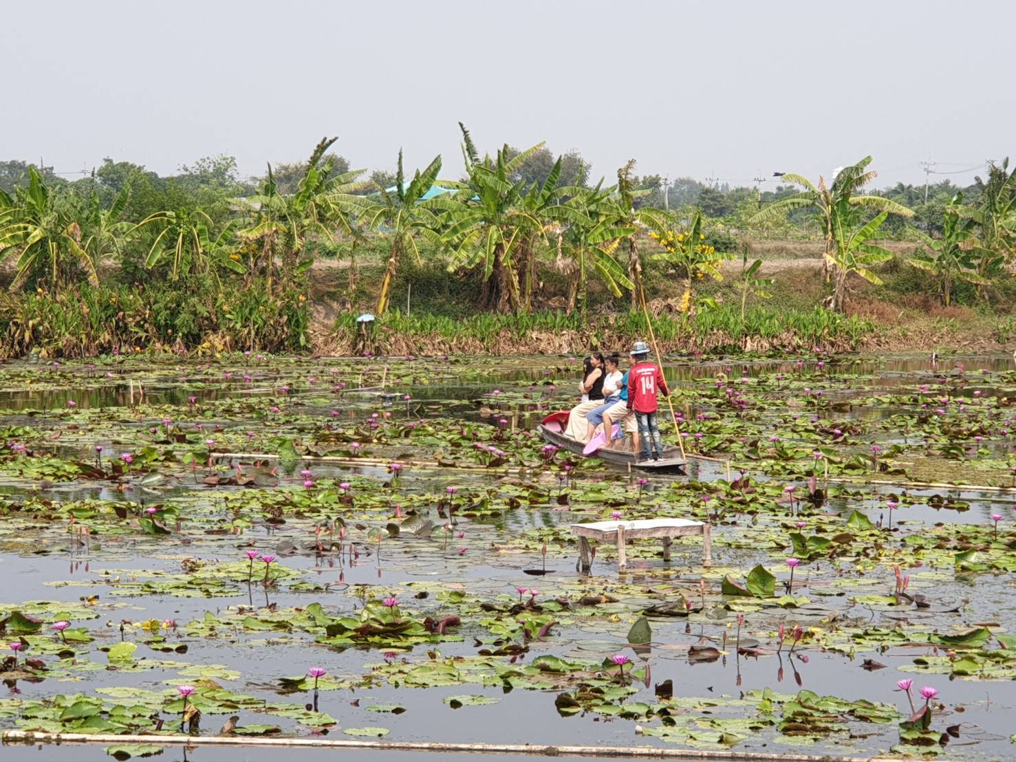 สำหรับตลาดน้ำทุ่งบัวแดง อยู่ใน อ.บางเลน จ.นครปฐม เป็นแหล่งท่องเที่ยวพักผ่อน รับประทานอาหาร ชิมเมี่ยงกลีบบัว นั่งเรือพายไปชมดอกบัวแดง ชมได้ตลอดทั้งวัน โดยเฉพาะช่วงเช้า บัวแดงกับบัวสายพันธุ์ดั้งเดิมจะบานพร้อมกัน บริการถ่ายภาพด้วยโดรน เปิดเข้าชมทุกวัน