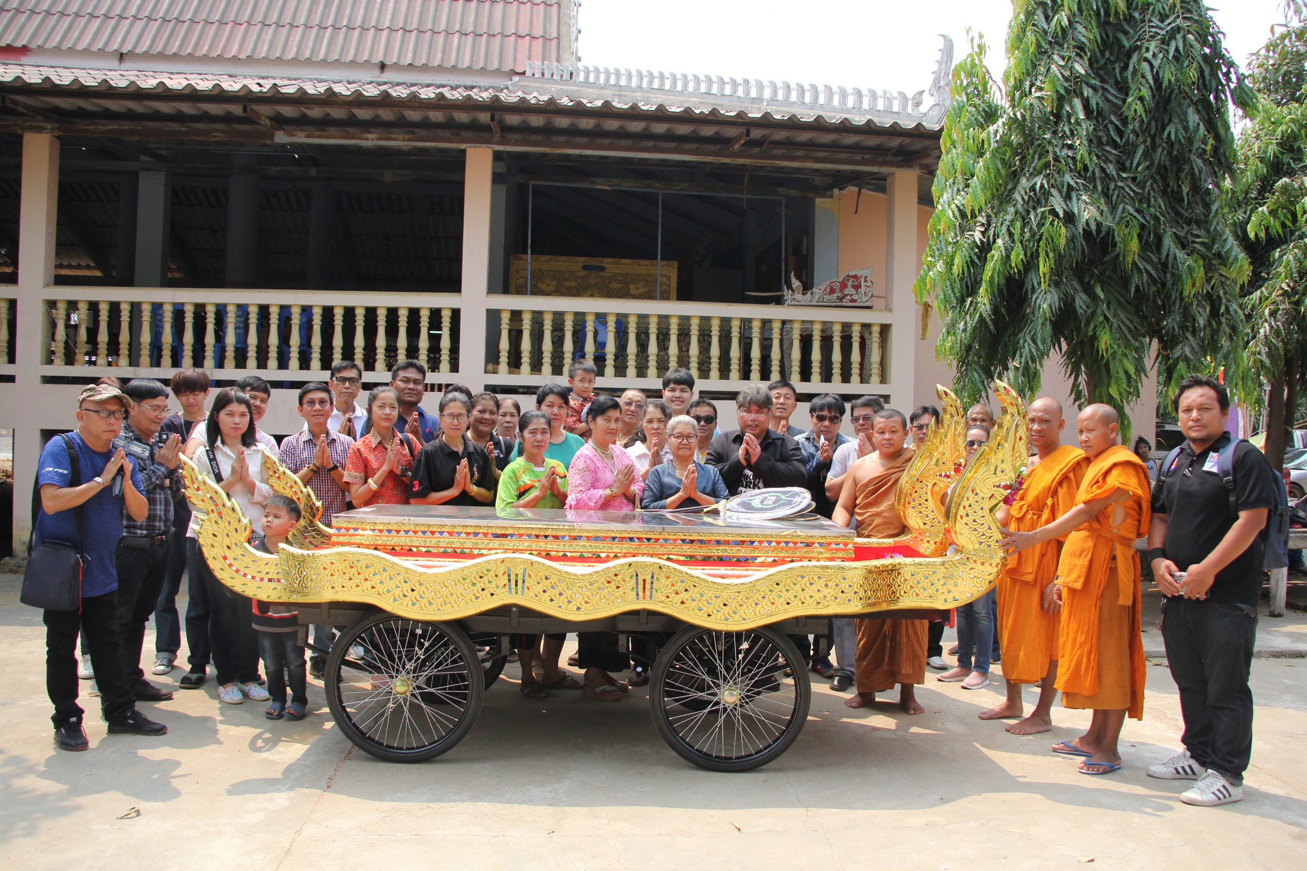 จากนั้นกลุ่มเพื่อนสื่อมวลชน จังหวัดสุพรรณบุรี และผู้สื่อข่าวจาก จ.อุทัยธานี นางพชรพรรณ มาตรศรี ผู้พิพากษาสมทบศาลเยาวชนและครอบครัวจังหวัดสุพรรณบุรี ประธานคณะกรรมการพัฒนาสตรีอำเภออู่ทอง ผู้แทนจากเครือโรงงานน้ำตาลมิตรผล อ.ด่านช้าง จ.สุพรรณบุรี ได้ร่วมกับเพื่อนพ้องน้องพี่ และผู้มีจิตศรัทรา ร่วมกันบริจาคเงินสบทบทุน สร้างราชรถไม้แกละสลักพญานาค ปิดทองร่องแก้ว (รถเข็นศพ สำหรับเวียนศพรอบเมรุ ก่อนทำพิธีฌาปนกิจ) และตาลปัตร ใช้ในพิธีสวดพระอภิธรรมศพ ถวายให้กับวัดหนองเต่าทอง ต.หนองราชวัตร อ.หนองหญ้าไซ จ.สุพรรณบุรี เพื่อสาธารณประโยชน์และสาธารณกุศล