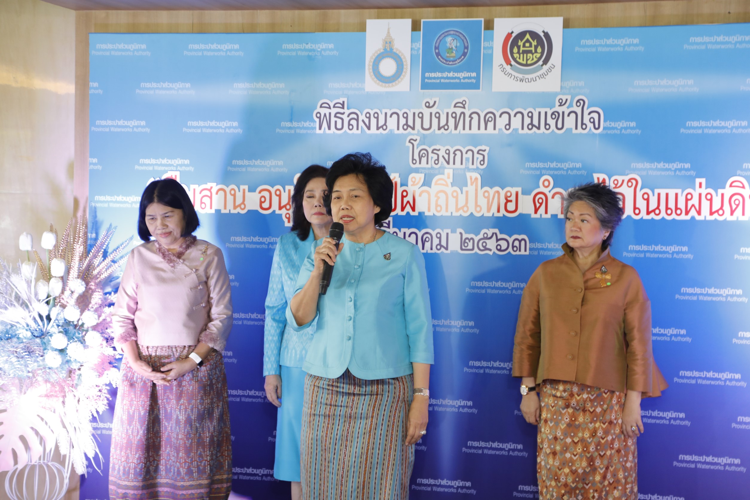 ดร.นพรัตน์ เมธาวีกุลชัย ผู้ว่าการการประปาส่วนภูมิภาค กล่าวว่า การอนุรักษ์ ส่งเสริม ศิลปะผ้าไทย เพื่อสืบสานพระราชปณิธาณ สมเด็จพระนางเจ้าสิริกิติ์ พระบรมราชินีนาถ พระบรมราชชนนีพันปีหลวง อันเป็นสมบัติ วัฒนธรรมที่ล้ำค่าของประเทศ และด้วยพื้นที่การให้บริการของการประปาส่วนภูมิภาค ที่กระจายอยู่ทั่วทั้งประเทศ การรณรงค์ให้ผู้บริหาร และพนักงานทั่วประเทศ สวมใส่ผ้าไทย อีกทั้งจะได้ประชาสัมพันธ์ให้ผู้ใช้น้ำได้เห็นถึงความสวยงามของผ้าไทย และกระตุ้นให้เกิดการมีส่วนร่วม ที่จะรักษาเอกลักษณ์ทางวัฒนธรรม ภูมิปัญญาท้องถิ่น และความภาคภูมิใจของคนไทยให้คงอยู่ต่อไป รวมถึงการร่วมมือครั้งนี้ จะนำไปสู่การส่งเสริมการสร้างงาน สร้างรายได้ สร้างอาชีพ ให้แก่กลุ่มสตรี และพี่น้องประชาชนในส่วนภูมิภาคอีกด้วย