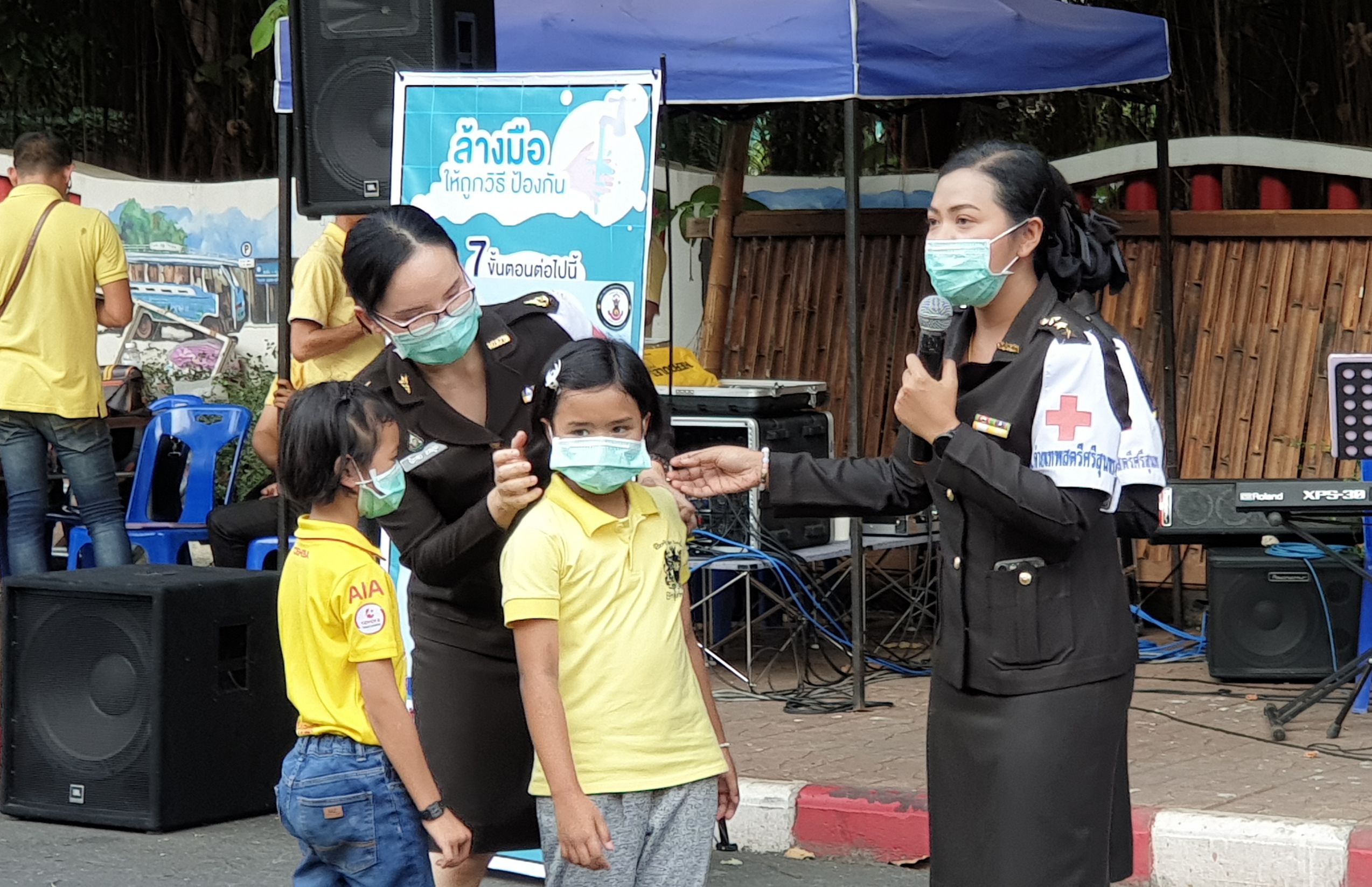 ที่ตลาดวัฒนธรรมชุมทางทุ่งสง ต.ปากแพรก อ.ทุ่งสง จ.นครศรีธรรมราช พลตรีภาสกร ทวีตา ผู้บัญชาการมณฑลทหารบกที่ 43 มอบหมายให้พันเอก โสรัตน์ สมุทวานิช ผู้อำนวยการโรงพยาบาลค่ายเทพสตรีศรีสุนทร จัดทีมวิทยากรสายแพทย์ รณรงค์สร้างความตระหนัก ในการเฝ้าระวัง ป้องกันโรคโคโรนาไวรัส/COVID -19 ร่วมกับ โรงพยาบาลธนบุรี-ทุ่งสง และ กองงานสาธารณสุขเทศบาลเมืองทุ่งสง ให้กับประชาชนที่ตลาดวัฒนธรรมชุมทางทุ่งสง ต.ปากแพรก อ.ทุ่งสง จ.นครศรีธรรมราช