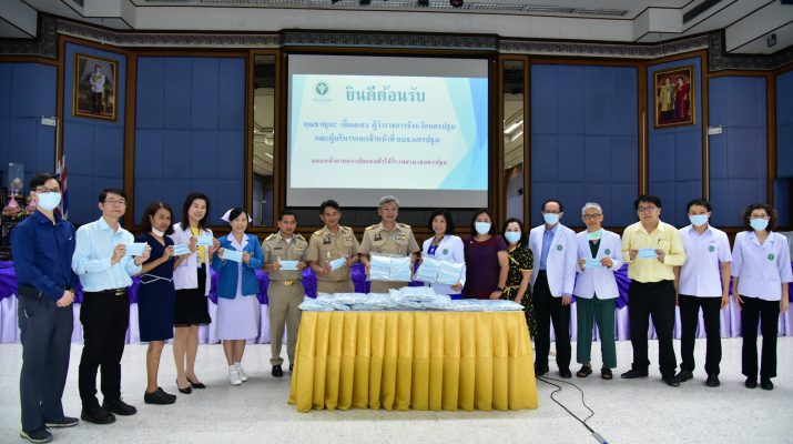 ผู้ว่าราชการจังหวัดนครปฐม มอบหน้ากากอนามัยแบบผ้า จำนวน 1,000 ชิ้น ให้กับโรงพยาบาลนครปฐม เพื่อให้กับบุคลากรทางการแพทย์ได้นำไปใช้ประโยชน์ ในการลดความเสี่ยงการติดเชื้อและการแพร่กระจายของเชื้อไปสู่ผู้ป่วยที่เข้ามารับบริการ