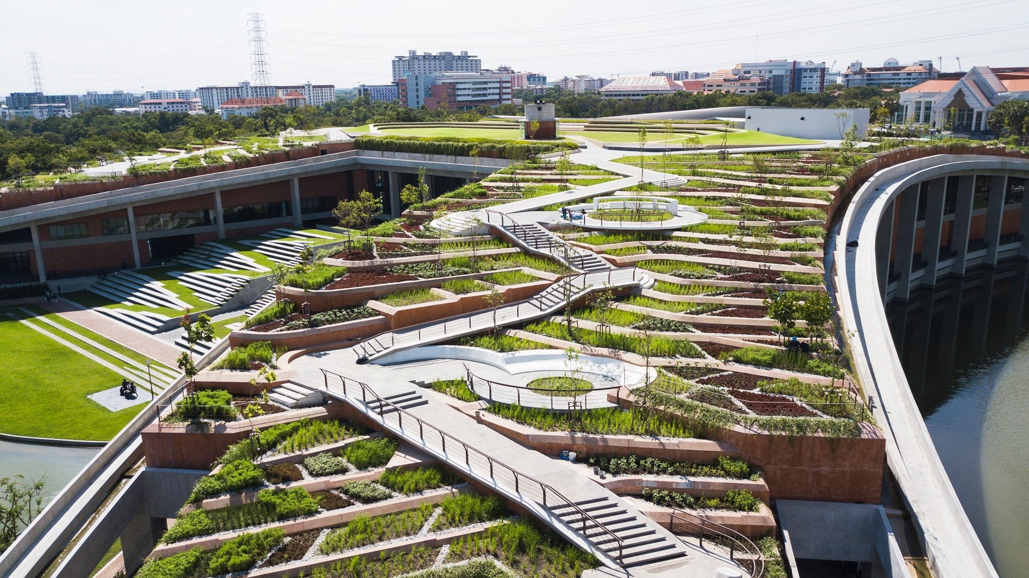 อุทยานเรียนรู้ป๋วย 100 ปี คือการผสมผสานกันอย่างลงตัวไร้รอยต่อ ระหว่างอาคารรูปตัว H ซึ่งสื่อความหมายโดยนัยยะถึงคำว่า Humanity อันหมายถึงความเท่าเทียมเสมอกันของพลเมืองไทยทุกคน เพราะอาคารแห่งนี้เปิดเป็นสาธารณะประโยชน์ให้คนทั่วไปเข้าใช้ได้เช่นกัน ไม่เฉพาะนักศึกษามหาวิทยาลัยธรรมศาสตร์ โดยอาคารสร้างอยู่ใต้หลังคาที่เป็น ‘พูนดิน’ สอดคล้องกับความหมายชื่ออาจารย์ป๋วย สื่อถึงการบำรุง หล่อเลี้ยง เสริมกำลัง ดังนั้นจึงไม่ได้เป็นเป็นแค่การนำดินมากองถมกัน แต่ต้องมีพืชพรรณงอกงามอยู่บนผืนดินอุดมสมบูรณ์ด้วย และนั่นคือที่มาของคอนเซปต์ ‘ภูเขา’ ที่ร่มรื่นไปด้วยพืชพรรณ เป็นปอดสีเขียวผลิตออกซิเจนให้กับพื้นที่โดยรอบภูเขาขนาดย่อมแห่งนี้ ถือเป็น Green Roof Urban Farm ที่ใหญ่ที่สุดในเอเชีย Urban Farm คือการทำเกษตรกรรม ที่เมื่อได้ผลผลิตก็ใช้ปรุงอาหารอยู่ภายในย่าน ลดการปล่อยก๊าซคาร์บอนไดออกไซด์จากการขนส่งผลผลิตไปยังพื้นที่อื่น “แปลงเกษตรออร์แกนิกบนหลังคาเขียวขนาด 7,000 ตร.ม. จะเปิดให้นักศึกษา คณาจารย์ บุคลากรมหาวิทยาลัยและผู้มีรายได้น้อย ได้มาทดลองปลูกพืชผักปลอดสารพิษ เพื่อนำผลผลิตไปรับประทานเอง หรือจะขายเป็นรายได้เสริมให้กับโรงอาหารของมหาวิทยาลัยก็ได้ “ผักที่นี่ต้องเป็นออร์แกนิกเท่านั้น เพราะเรามีเป้าหมายในการร่วมสร้างการเปลี่ยนแปลง ให้รูปแบบเกษตรกรรมของประเทศไทยเป็นแบบไร้สารเคมีอย่างยั่งยืนในอนาคต” อาจารย์ปริญญากล่าว