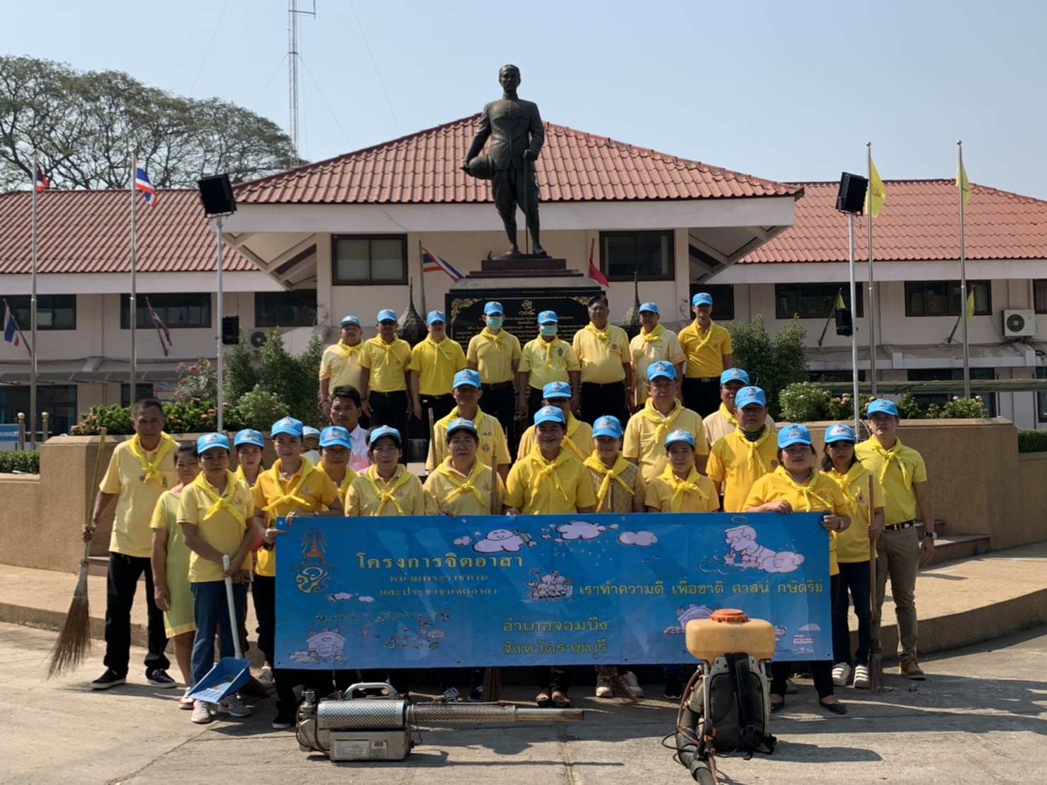 นายประยงค์ จันทเต็งนายอำเภอจอมบึง ผศอ.จอส.พระราชทาน อ.จอมบึง ร่วมกับหัวหน้าส่วนราชการ ปลัดอำเภอ นายมงคล ศิริเอก กำนัน ผู้ใหญ่บ้าน แพทย์ สารวัตร ผช ผู้ใหญ่บ้าน จนท รพ สมเด็จพระยุพราชจอมบึง ทต จอมบึง อบต จอมบึง พนักงาน สมาชิก อส จิตอาสากว่า 60 คน ได้จัดกิจกรรม จิตอาสาพัฒนาทำความสะอาด ปรับปรุงภูมิทัศน์ พ่นควันฆ่าเชื้อโรค รดน้ำต้นไม้ ตัดต้นไม้ ล้างถนน คัดแยกขยะ เพื่อปรับปรุงพัฒนาศูนย์ราชการอำเภอ สถานที่ราชการ หอประชุม ล้างถนนสาธารณะ ตัดแต่งต้นไม้ เก็บขยะ พ่นควันฆ่าเชื้อแบคทีเรีย ป้องกันโรค มุ่งเน้นให้เกิดความสามัคคี รักความสะอาด และสร้างจิตสำนึกให้เกิดความจงรักภักดีต่อสถาบันพระมหากษัตริย์ ชีวิตต้องมีแก่นสาร