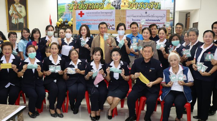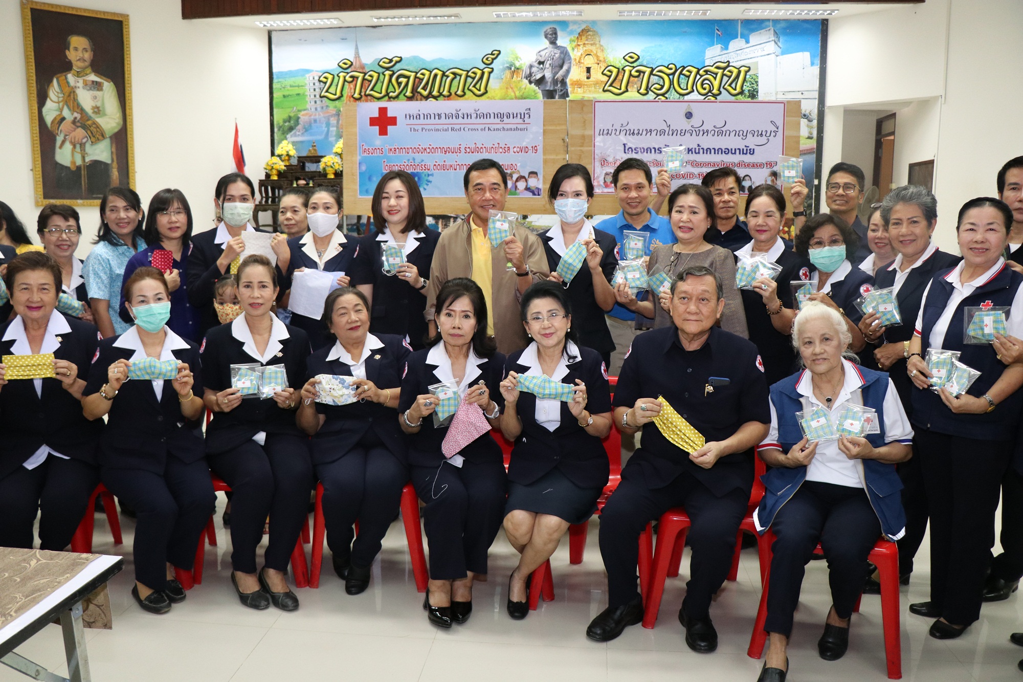 สำนักงานเหล่ากาชาดจังหวัดกาญจนบุรี จึงได้จัดทำโครงการเหล่ากาชาดจังหวัดกาญจนบุรีร่วมใจต้านภัยไวรัสโควิด-19 โดยนำเจ้าหน้าที่สาธารณสุขมาอบรมให้ความรู้ในการป้องกันตนเองจากเชื้อไวรัสโควิด-19 เพื่อให้สมาชิกและจิตอาสานำไปเผยแพร่ให้ความรู้แนะนำประชาชนในการป้องกันตนเองอย่างถูกต้อง เหมาะสม รวมทั้งได้ร่วมกันเย็บหน้ากากอนามัย ซึ่งประสบปัญหาขาดแคลนอยู่ในขณะนี้ เพื่อที่จะนำไปแจกจ่ายให้กับผู้ยากไร้และผู้ด้อยโอกาสในพื้นที่จังหวัดกาญจนบุรี นำไปสวมใส่ป้องกันตนเองจากการแพร่ระบาดของเชื้อไวรัสโควิด-19 รวมทั้งเป็นการช่วยป้องกันและลดอัตราของผู้ติดเชื้อและป่วยให้ไม่เพิ่มขึ้นจากปัจจุบัน