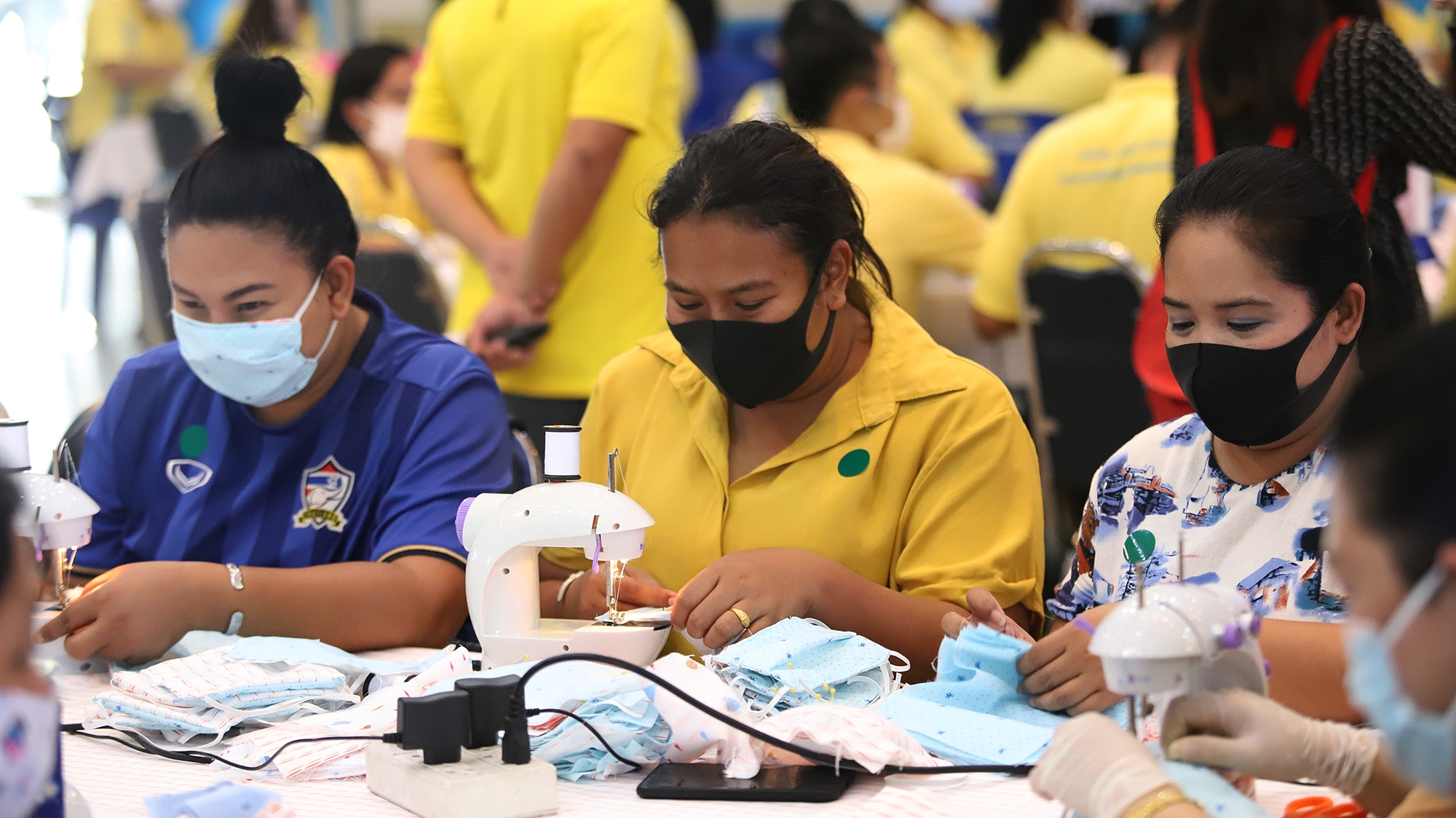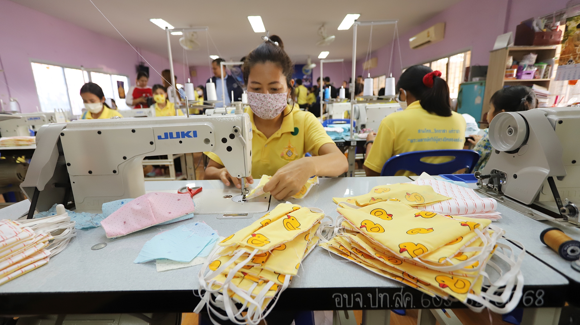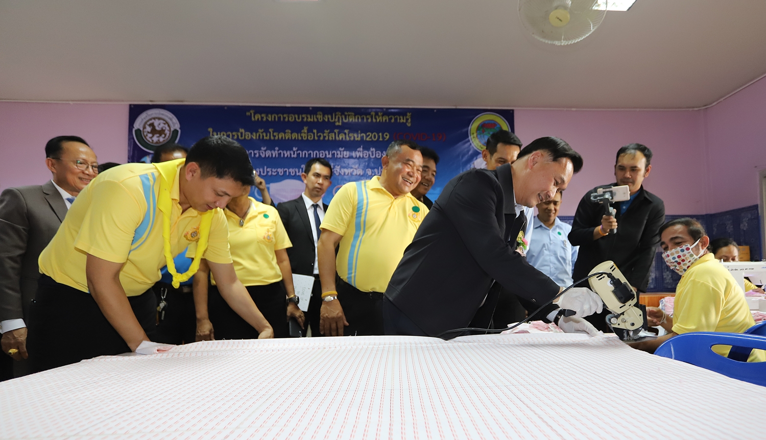 อีกหนึ่งเรื่องที่อยากให้ความมั่นใจกับพี่น้องประชาชนทุกท่านก็คือ หน้ากากอนามัยชนิดผ้า เป็นหน้ากากทางเลือกของพี่น้องประชาชนที่มีสุขภาพแข็งแรง สามารถนำมาใช้ในชีวิตประจำวัน หากจำเป็นต้องเข้าไปในสถานที่ชุมชน ผู้คนหนาแน่น หรือใช้ขนส่งสาธารณะร่วมกันเป็นจำนวนมาก หน้ากากผ้าสามารถป้องกันและลดการแพร่กระจายจากละอองไอจาม ซึ่งเป็นสาเหตุการติดเชื้อโรคไวรัสโคโรนา 2019 ทั้งยังสามารถซักทำความสะอาดนำมาใช้ซ้ำได้ ช่วยลดค่าใช้จ่าย ช่วยประหยัดงบประมาณในการหาซื้อหน้ากาก และลดขยะติดเชื้อจากหน้ากากอนามัยชนิดใช้แล้วทิ้งได้อีกด้วย ด้วยการผนึกกำลังอย่างเข้มแข็ง ระหว่าง ทีมวิทยากร ครู ก. มากกว่า 2.3 แสนคน กับ กลุ่มจิตอาสาต่างๆ ในแต่ละท้องถิ่น ทำให้ยอดการจัดทำหน้ากากอนามัยชนิดผ้าเพิ่มสูงขึ้นอย่างรวดเร็ว จนถึงวันนี้มีจำนวนการผลิตมากกว่า 2 ล้านชิ้น จากเป้าหมายการผลิต 50 ล้านชิ้นทั่วประเทศ ทั้งหมดนี้เป็นความร่วมมือร่วมใจของทุกภาคส่วน โดยเฉพาะพี่น้ององค์กรปกครองส่วนท้องถิ่น ทีมวิทยากร ครู ก. และกลุ่มจิตอาสาต่างๆ ทำให้มั่นใจได้ว่า พวกเราชาวไทยจะจับมือกันอย่างเหนียวแน่น เข้มแข็ง ผ่านวิกฤติ COVID-19 ไปได้ในที่สุด” มท.3 กล่าว