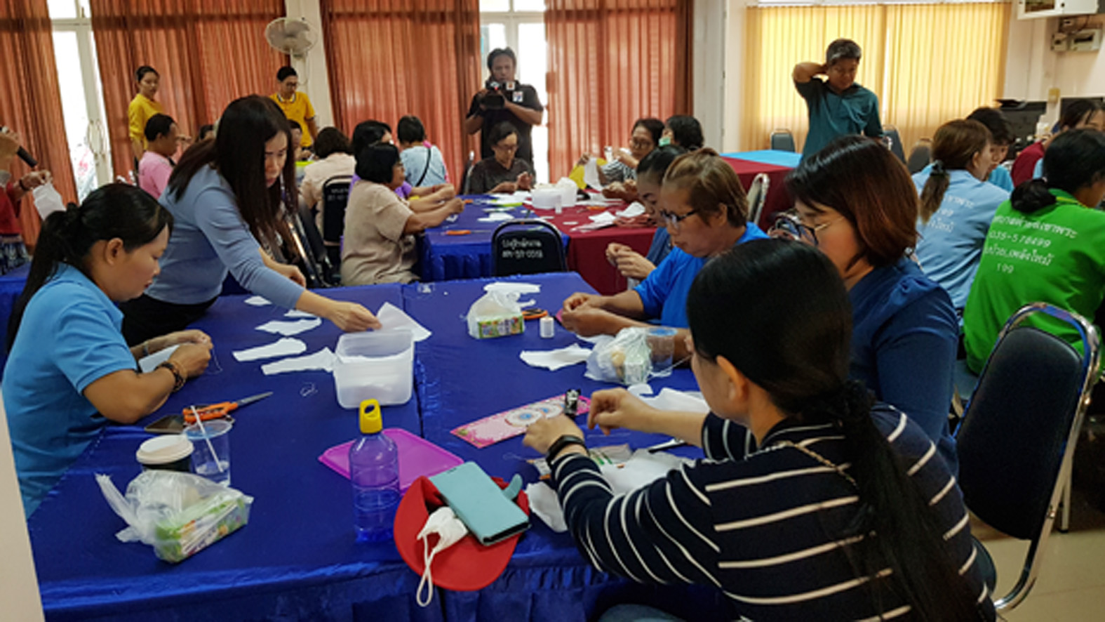 สุพรรณบุรีเทศบาลเขาตำบลพระสอนทำเจลฆ่าเชื้อและแมสก์ป้องกันไวรัส